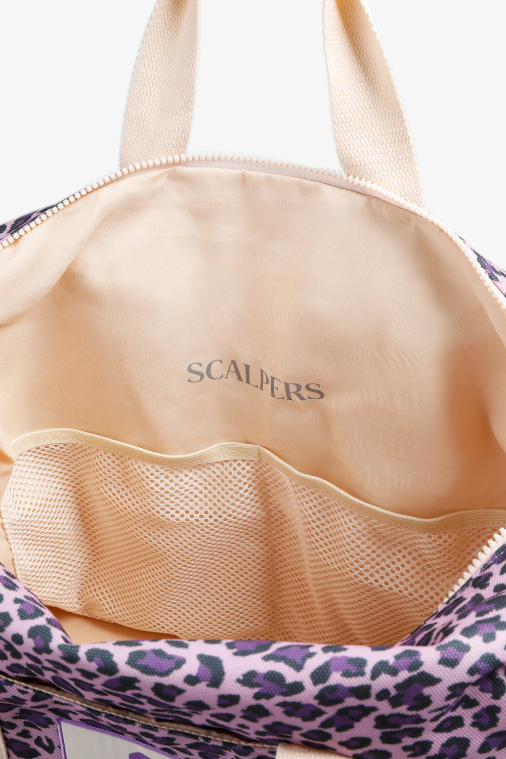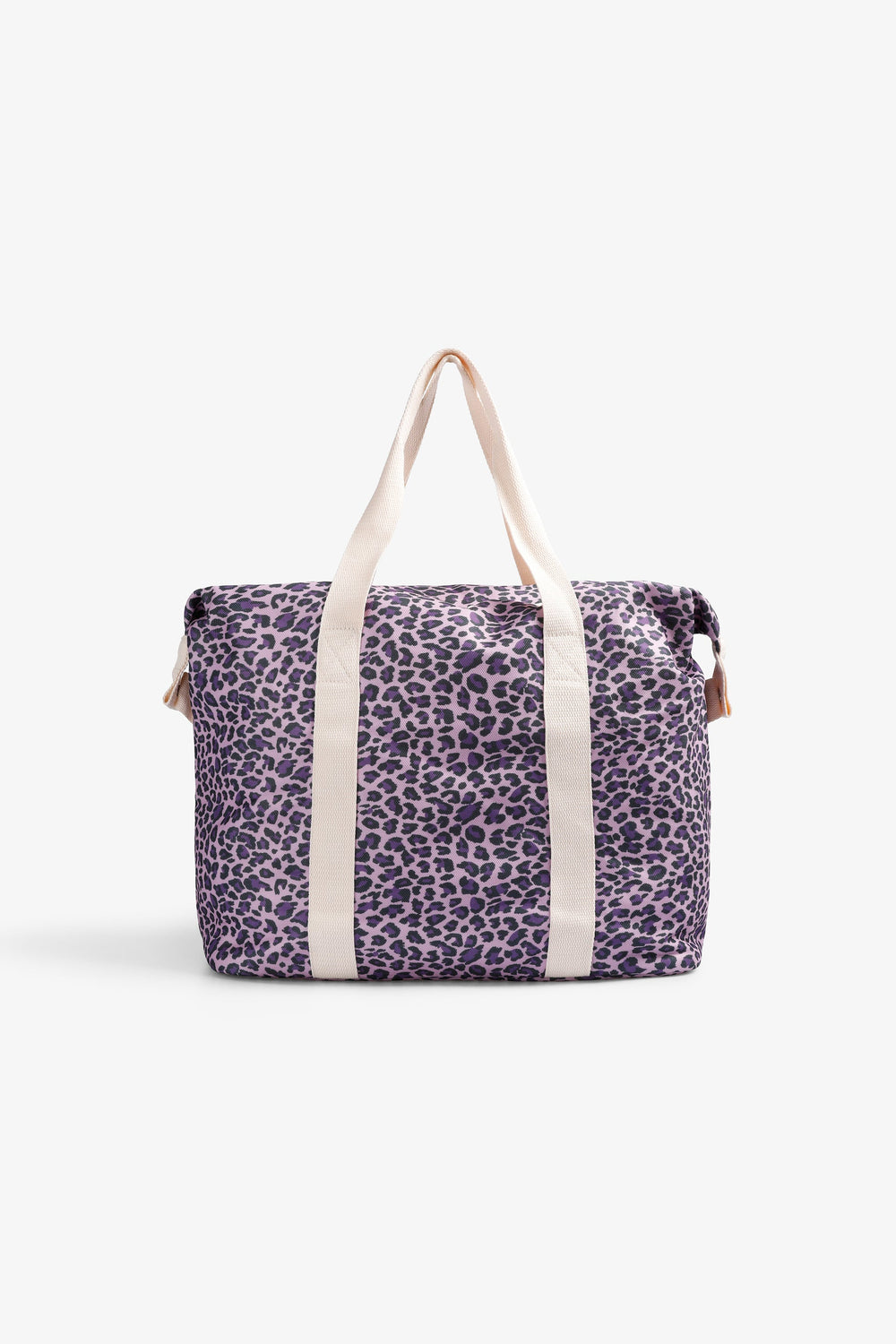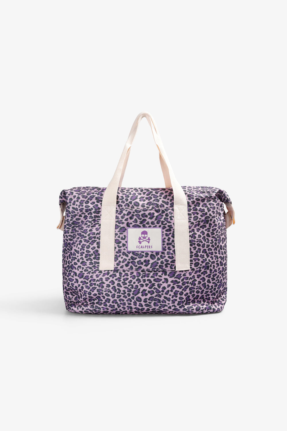 Sac à double poignée. Motif animal. Étiquette brodée devant avec logo et skull. Fermeture éclair. Logo à l’intérieur.