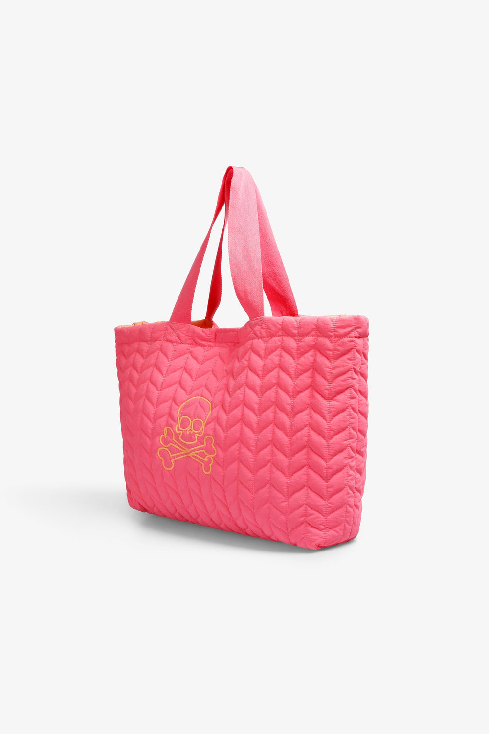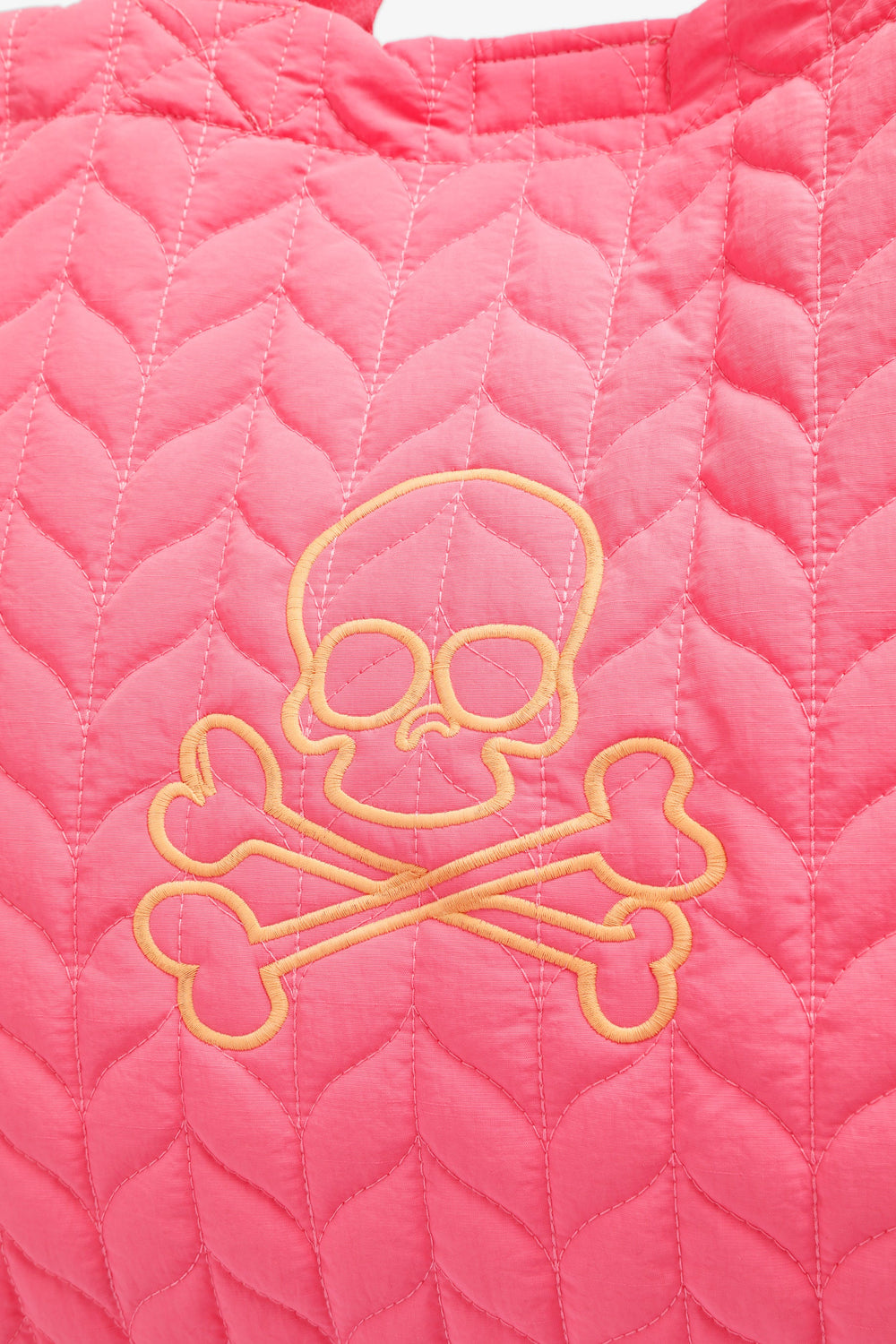 Sac synthétique effet matelassé. Skull contrastant brodé devant. Double poignée. Poche intérieure.