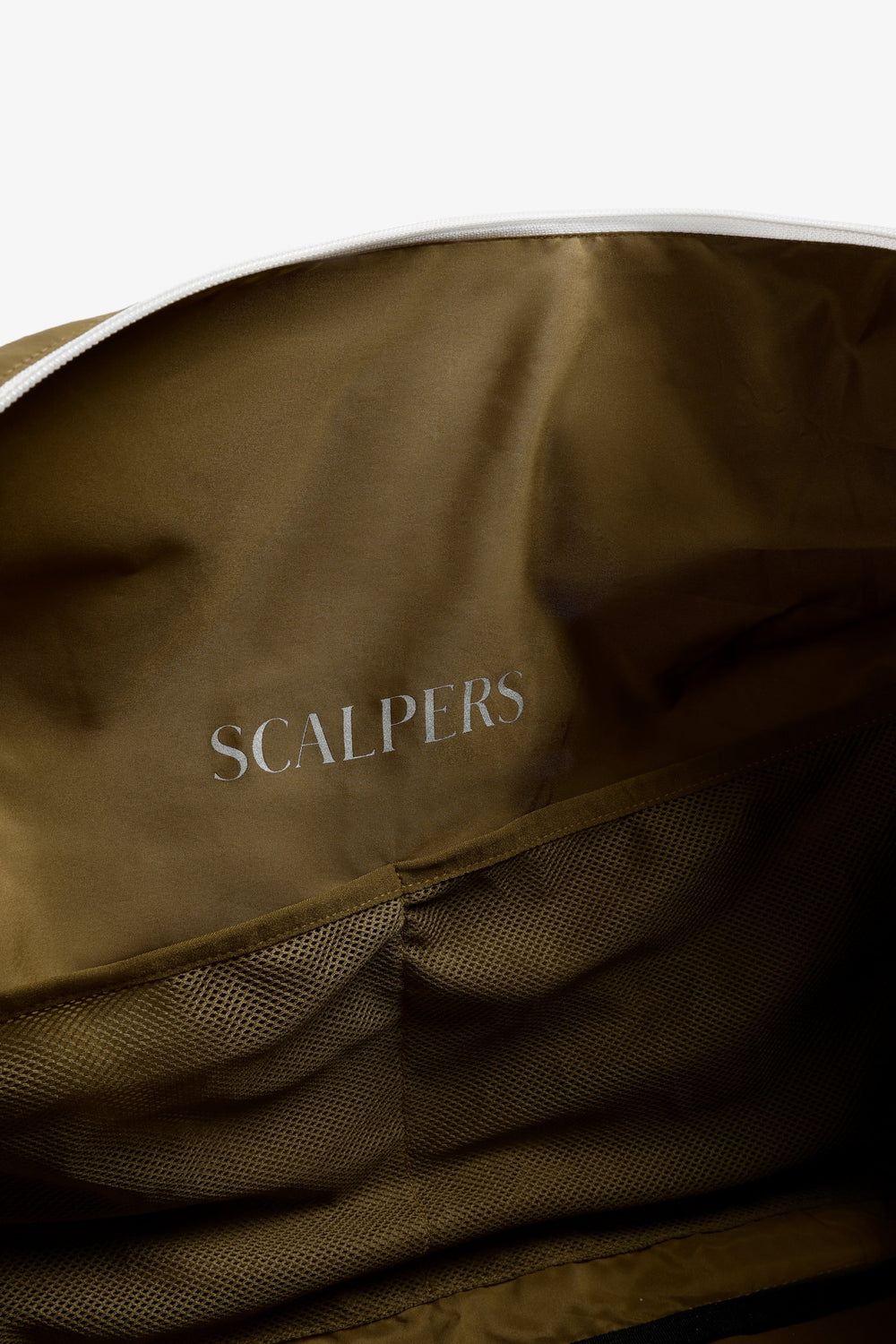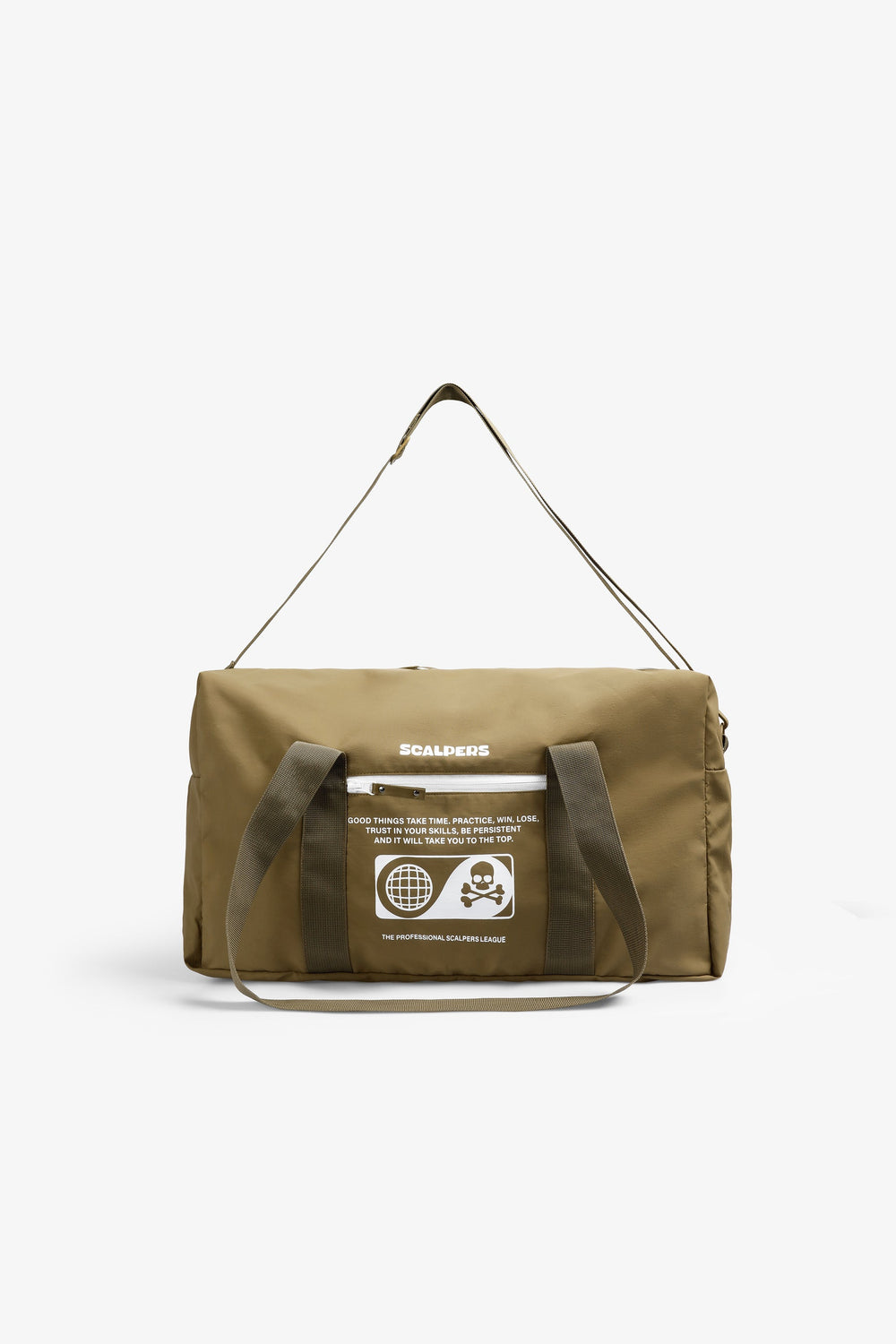 Sac en tissu technique. Compartiment principal et sur le côté à fermeture éclair. Fermeture éclair, poignées et longue anse amovible. Imprimé devant avec logo et skull.