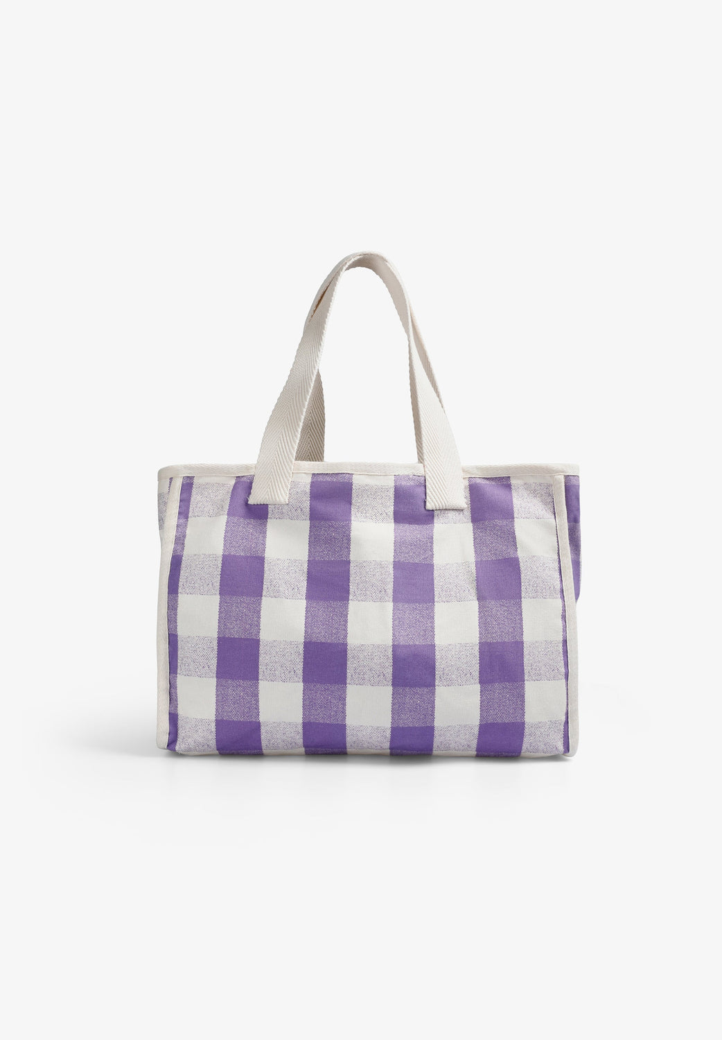 Sac cabas 100 % coton. Double poignée. Étiquette devant avec logo et skull. Imprimé carreaux