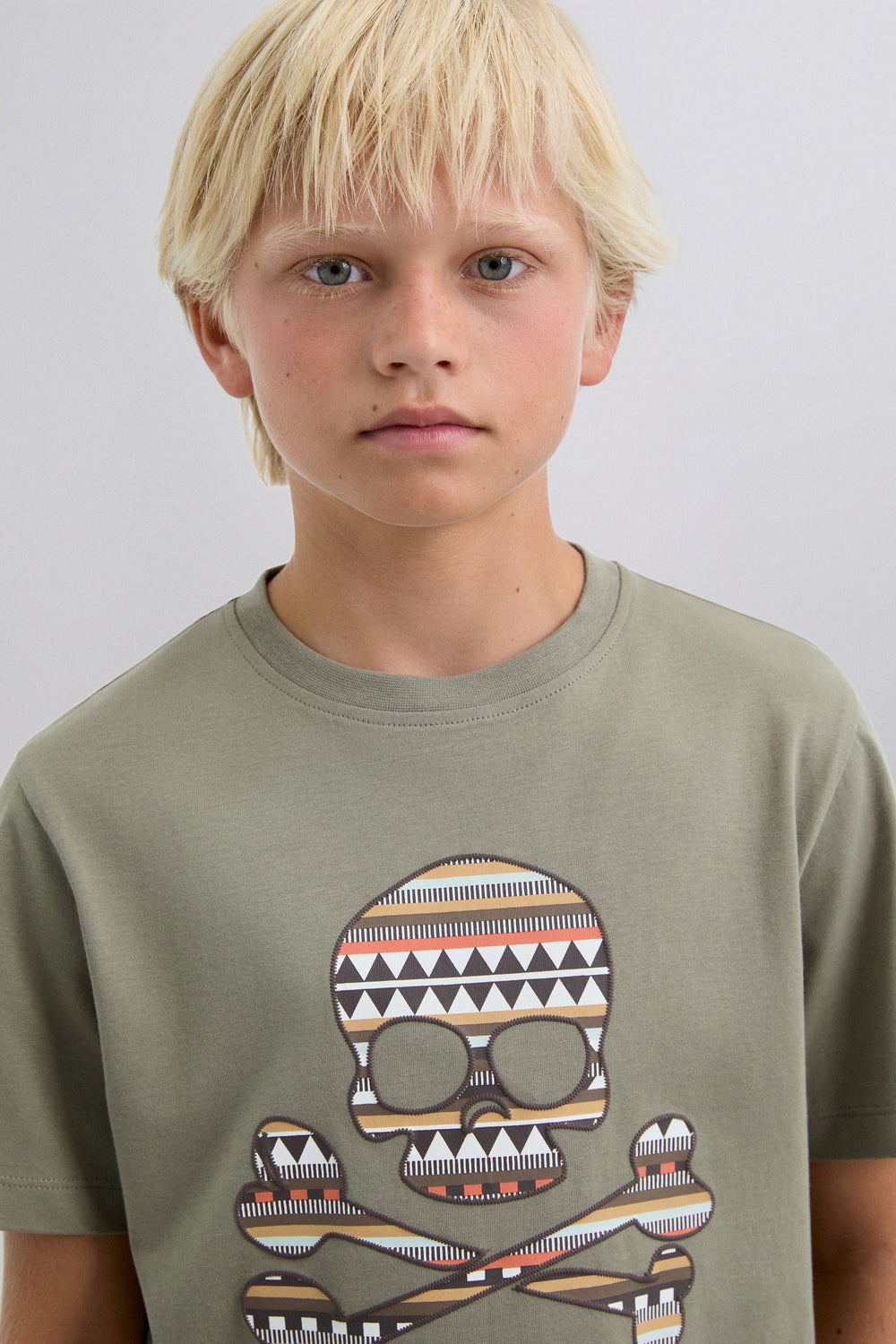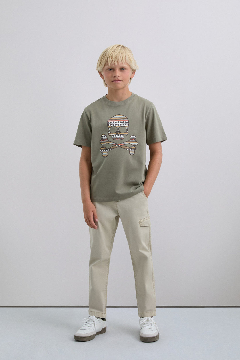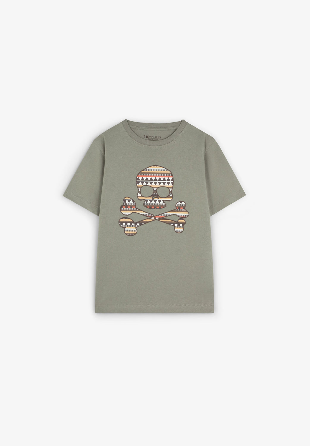 T-shirt avec skull imprimé. 100 % coton BCI. Coupe droite. Col rond. Manches courtes.