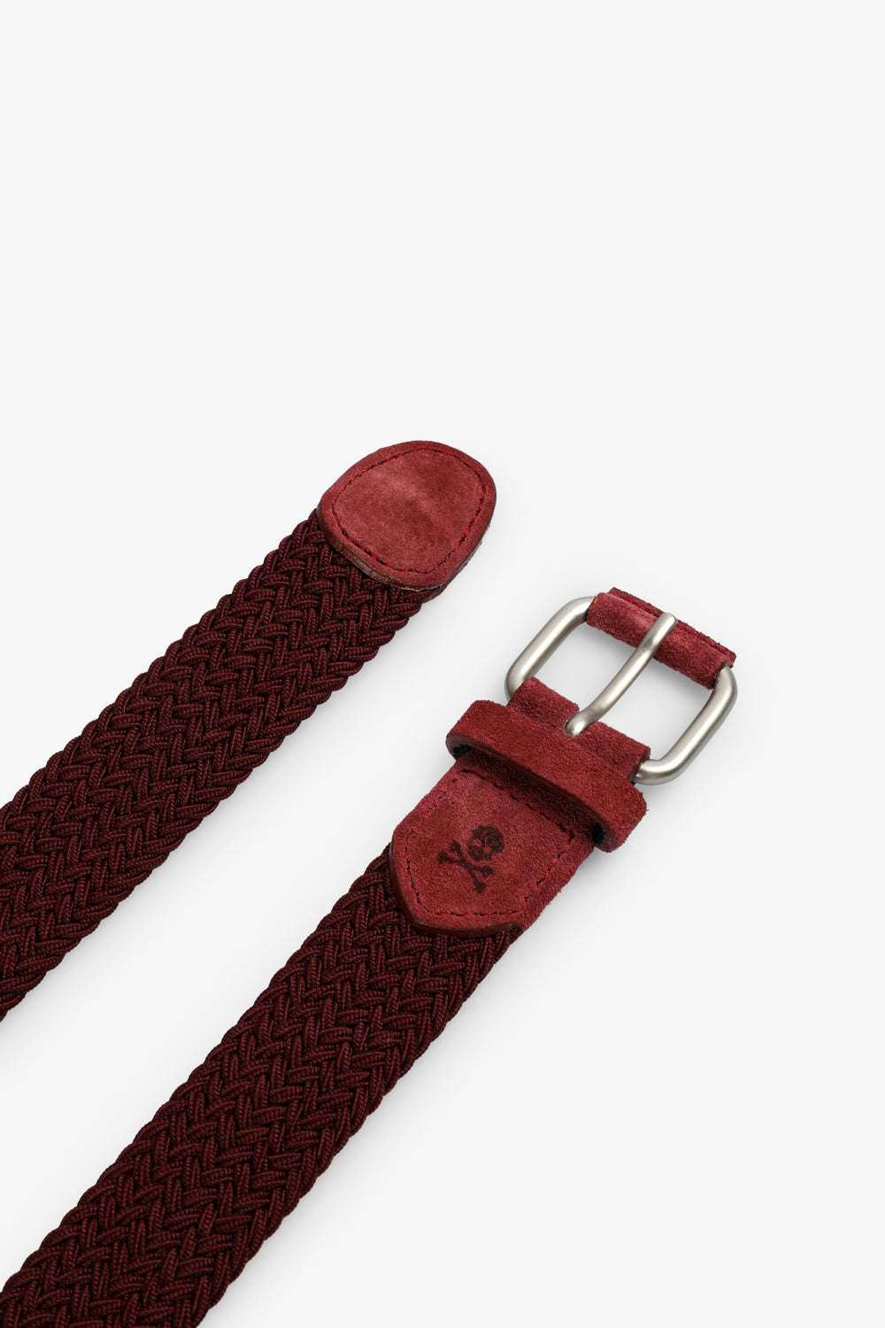 Ceinture tressée. Boucle ajustable. Skull brodé ton sur ton. Décorations 100 % cuir.
