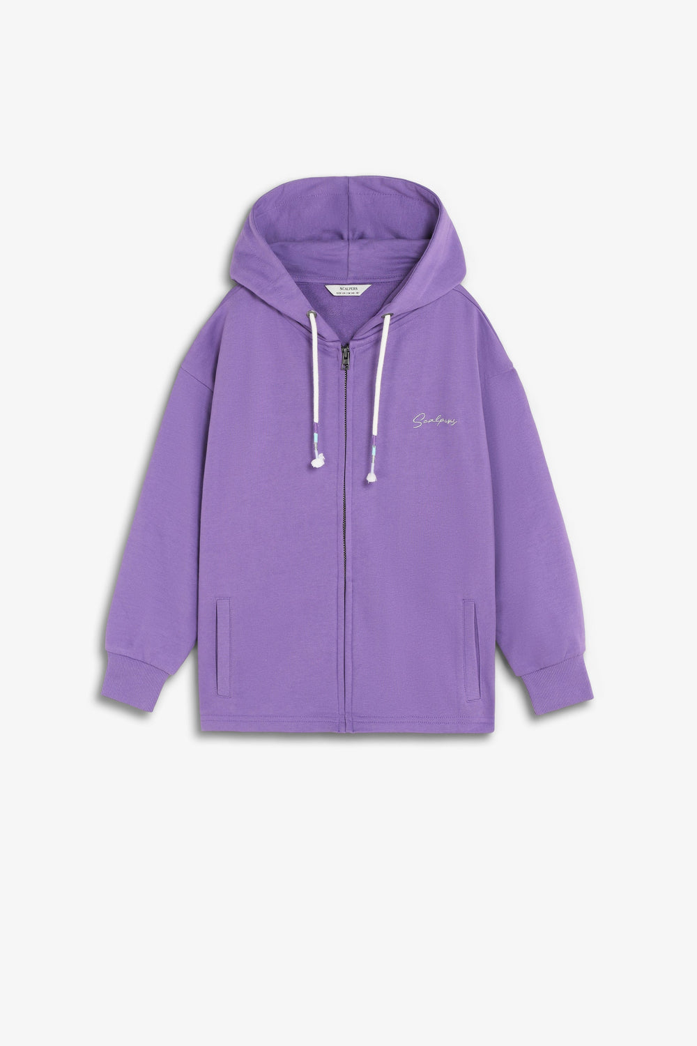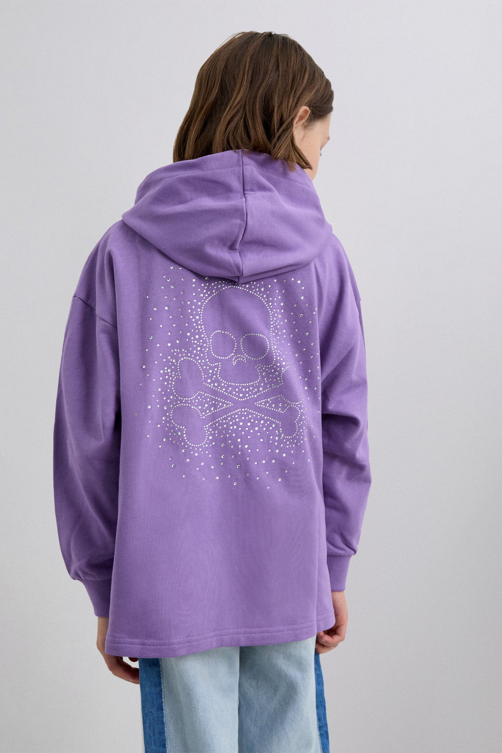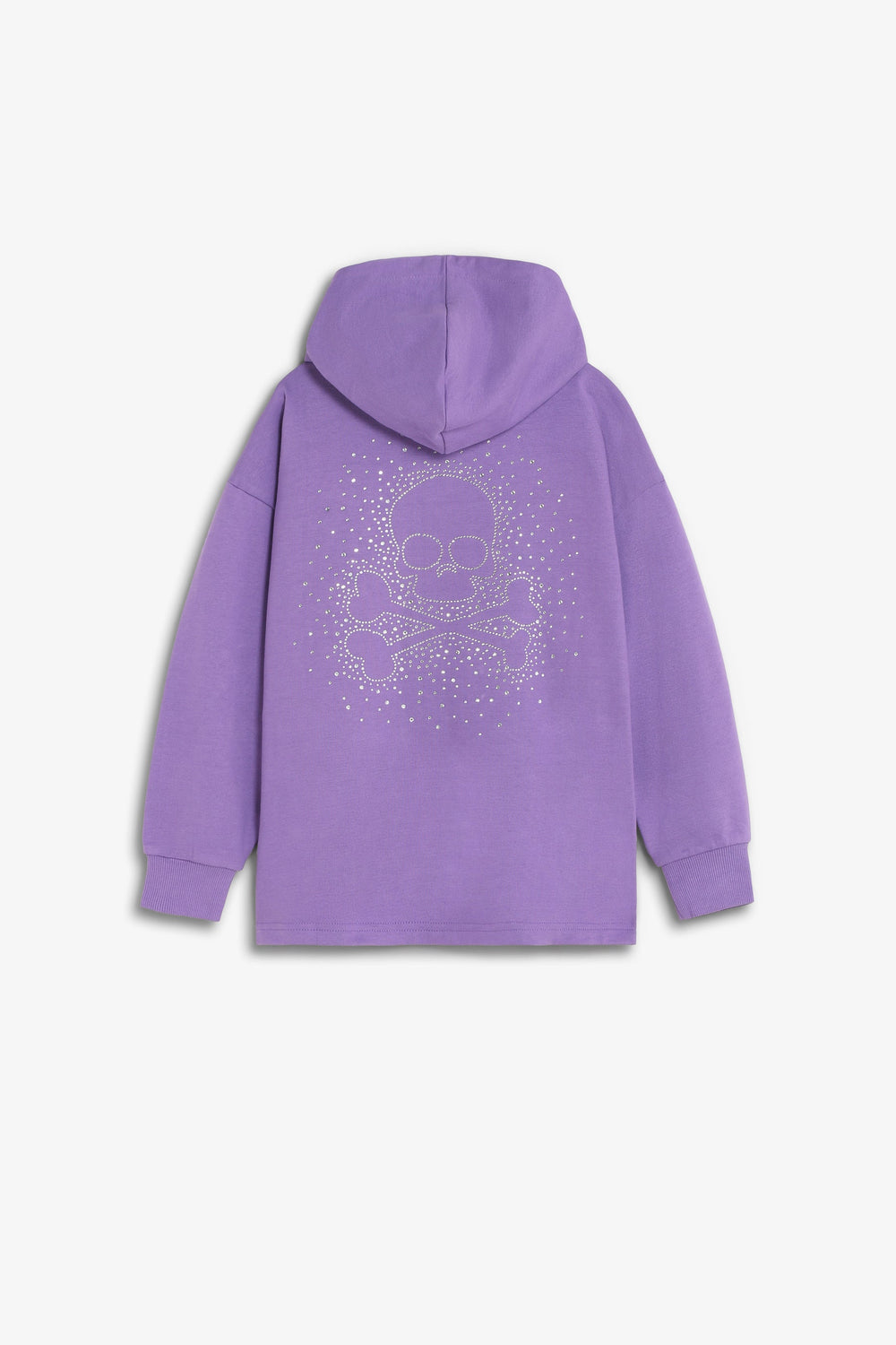 Sweat à capuche réglable avec cordon de serrage. Fermeture éclair devant. Manches longues avec poignets finition bord de côte. Logo brodé sur la poitrine et skull clouté dans le dos.