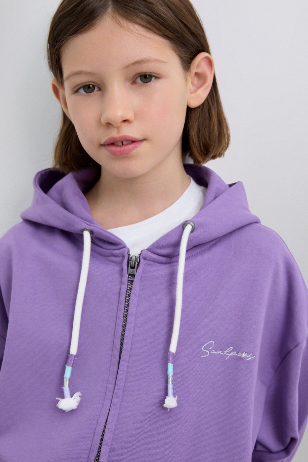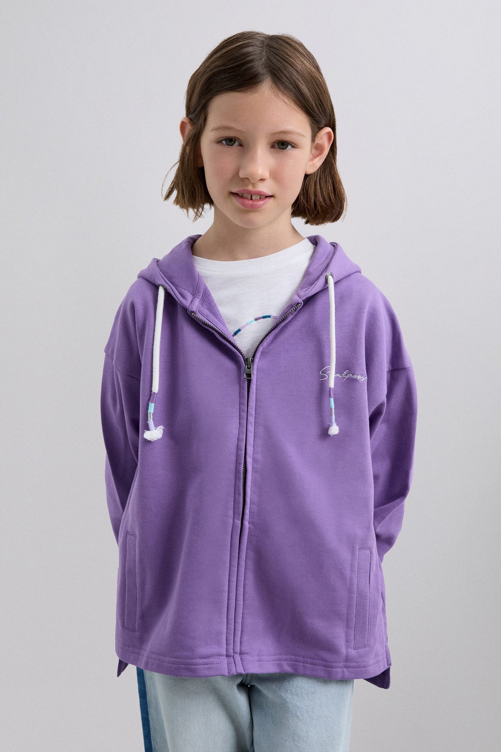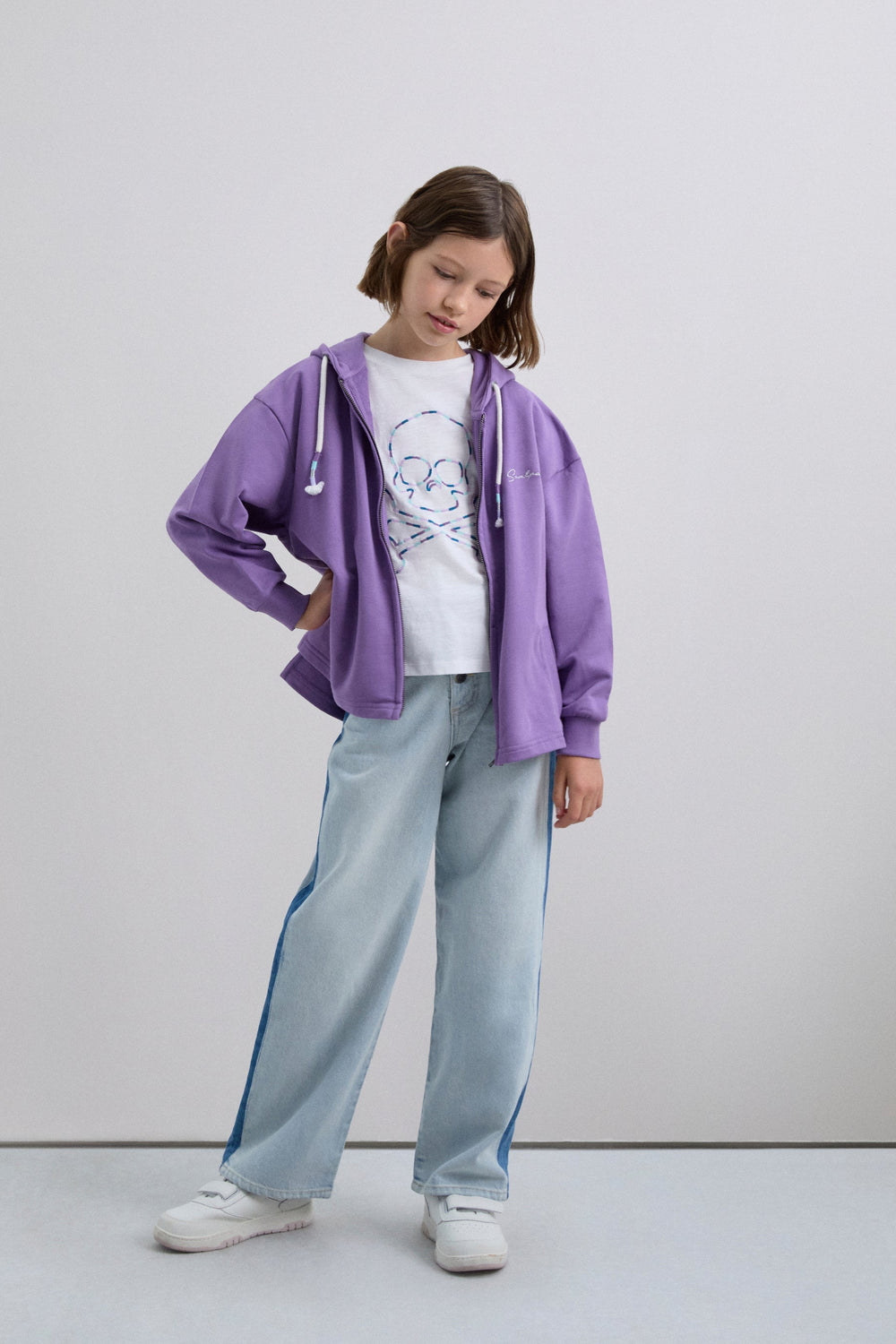 Sweat à capuche réglable avec cordon de serrage. Fermeture éclair devant. Manches longues avec poignets finition bord de côte. Logo brodé sur la poitrine et skull clouté dans le dos.