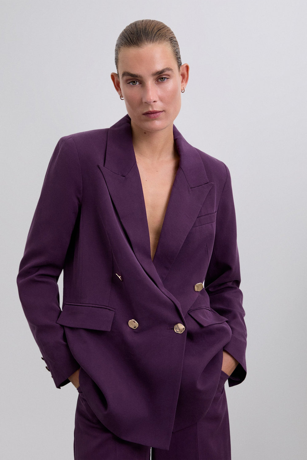 Blazer en coton. Coupe droite. Col à revers. Boutonnage croisé. Manches longues. Poches passepoilées. Poignets boutonnés.