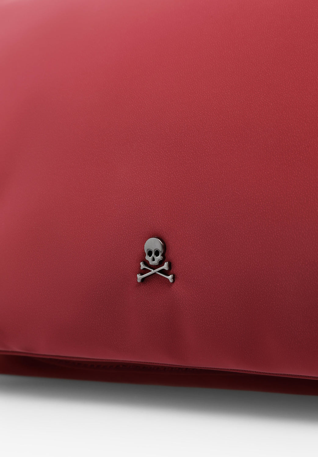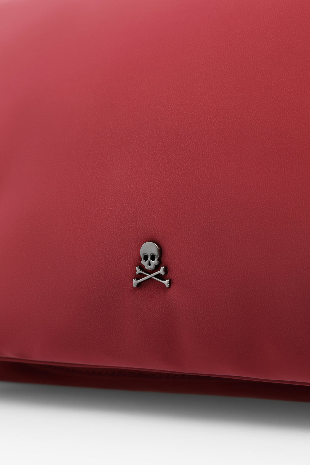 Sac en polyuréthane. Fermoir aimanté. Poignée tressée avec détails métallisés et longue anse réglable. Skull en métal devant. Doublure intérieure et poche à fermeture éclair avec logo.