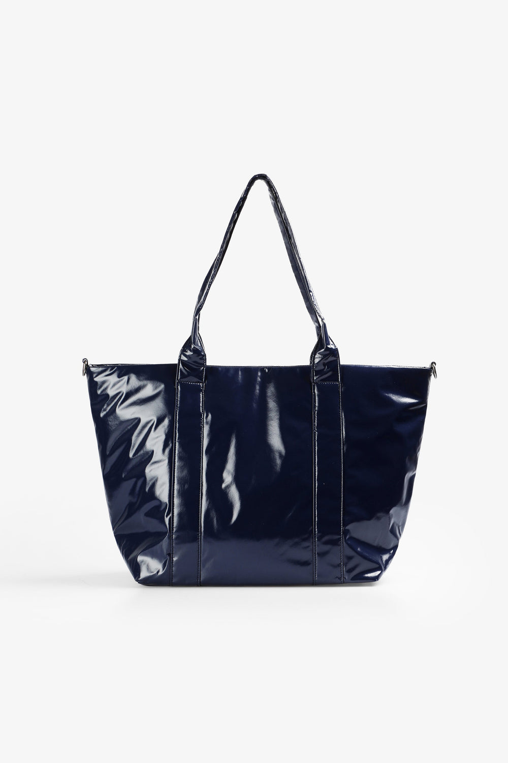 Sac cabas en PU métallisé. Légèrement matelassé, doublure avec poche à fermeture éclair. Fermeture éclair. Double poignée. Logo en métal devant.