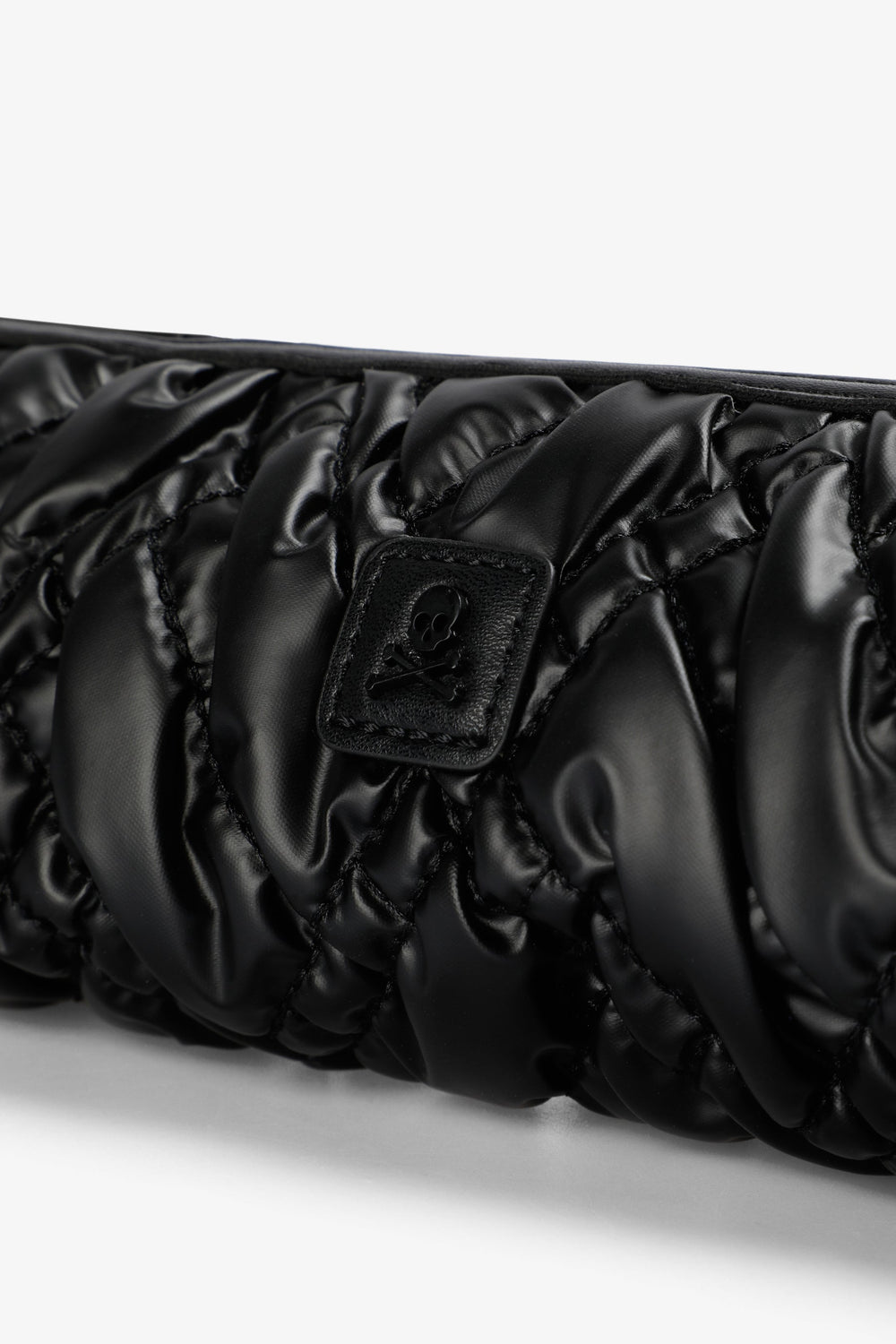 Trousse de toilette matelassée. Fermeture éclair. Écusson en caoutchouc devant avec skull métallisé.