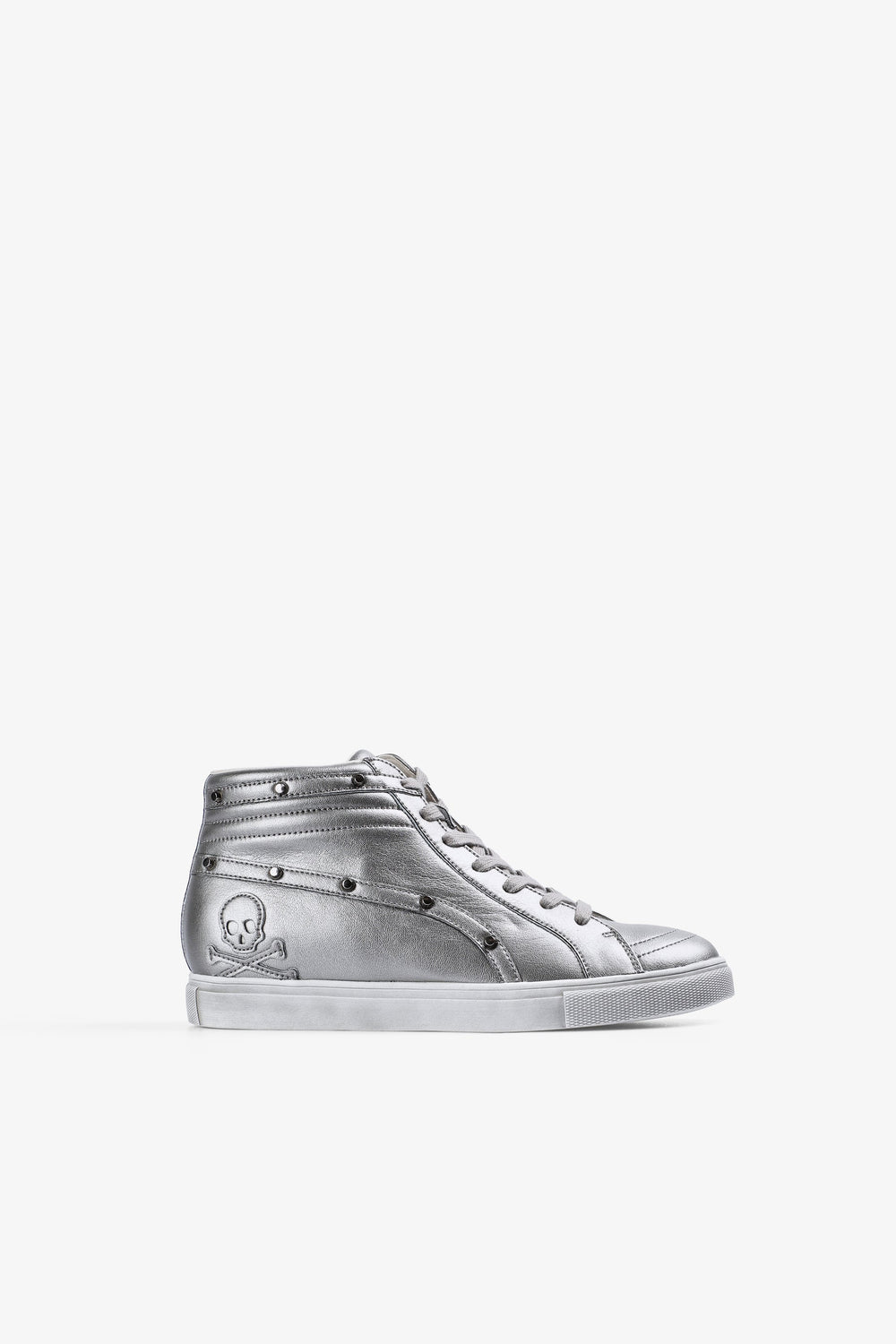 Baskets montantes métallisées 100 % cuir. Skull ton sur ton brodé sur le côté. Lacets assortis et fermeture éclair sur le côté. Coutures ton sur ton avec clous. Semelle contrastante en caoutchouc. Logo brodé ton sur ton sur la languette.