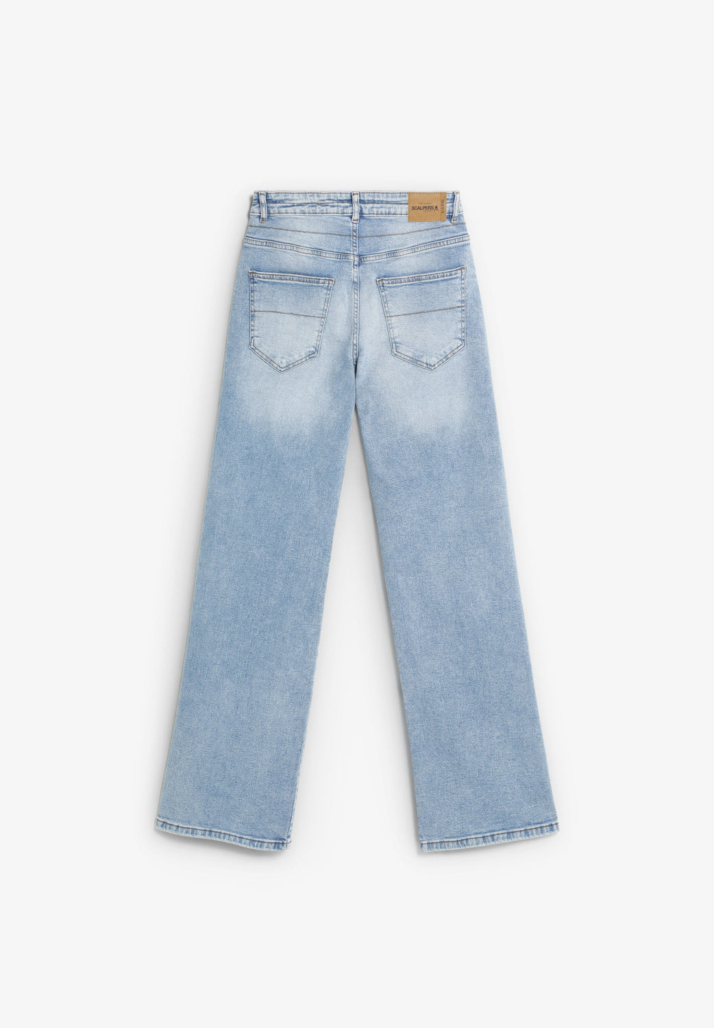 Pantalon denim 100 % coton légèrement extensible. Coupe droite et full Length. Taille moyenne avec fermeture Éclair et bouton. Passants de ceinture. Poches à l’avant et à l’arrière.