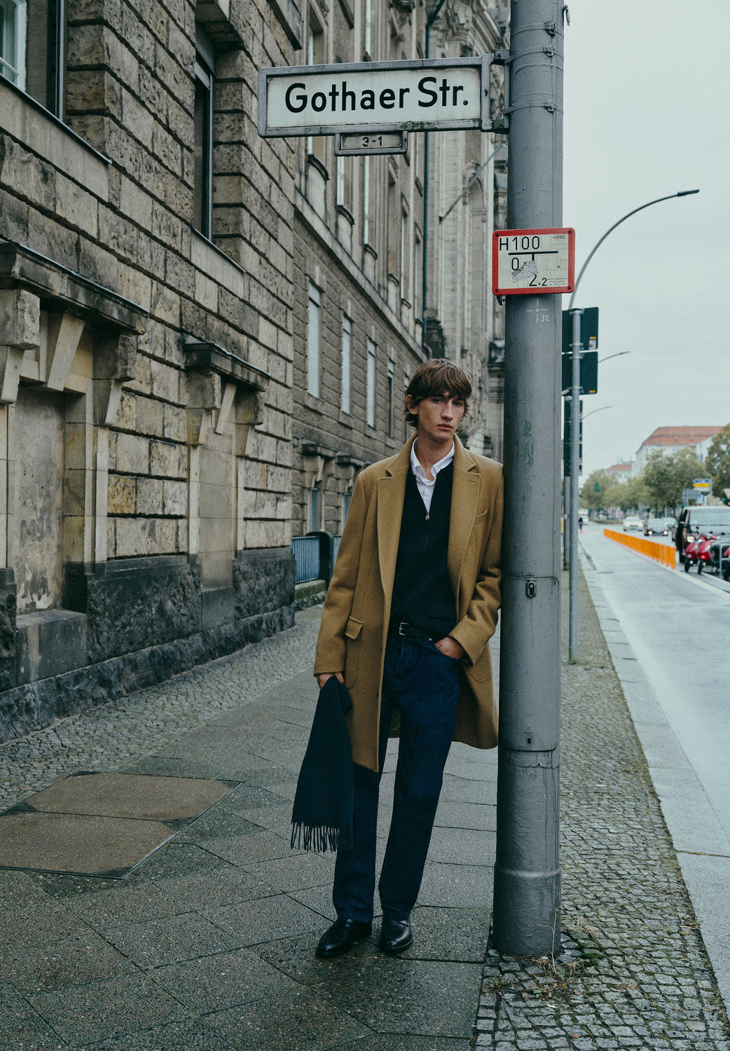 Long coat made of a high quality virgin wool blend. Lapel collar. Long sleeves with buttoned cuffs. Front pockets with double flap. Front button fastening. Back vent.