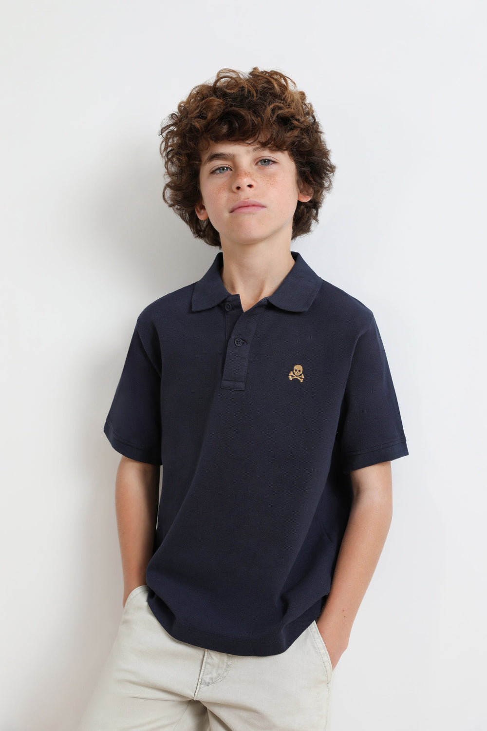 Polo confeccionado en tejido 100% algodón. Corte Regular Fit, cuello clásico y cierre con botones. Detalle de calavera bordada en el pecho.