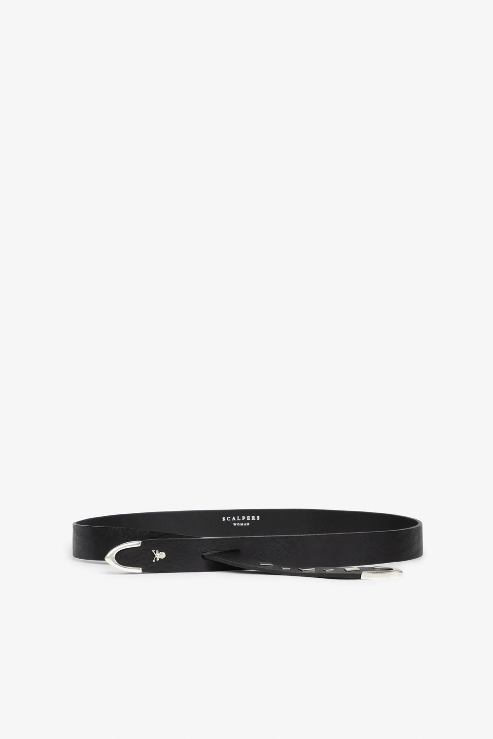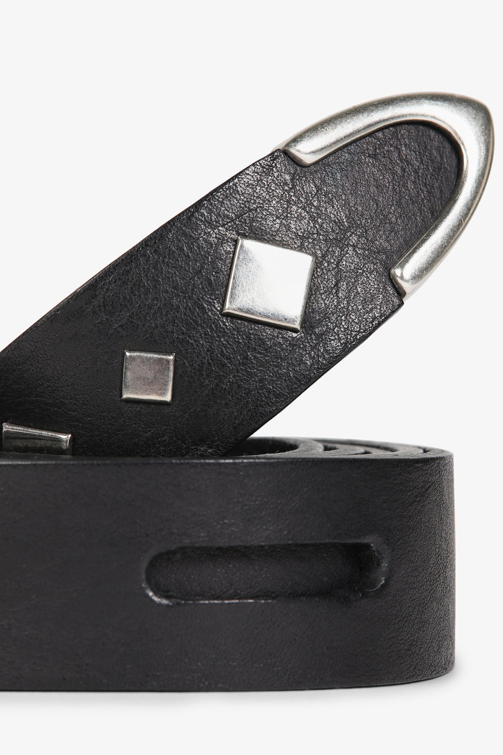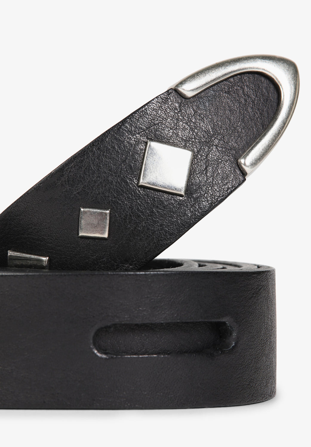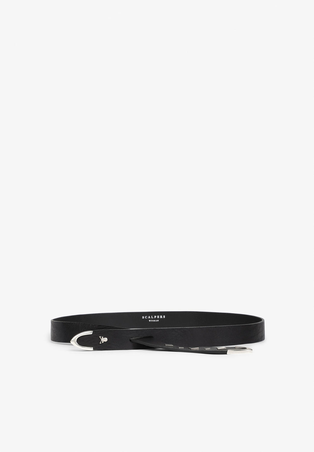 Belt with skull detail and studs in 100% leather. Knot fastening. Length: 123 cm / Width: 3 cm.