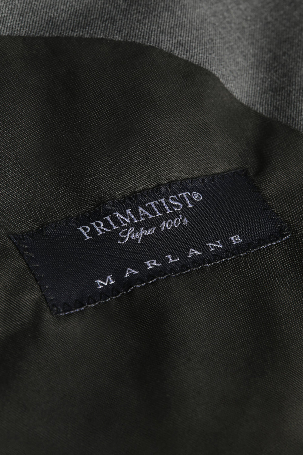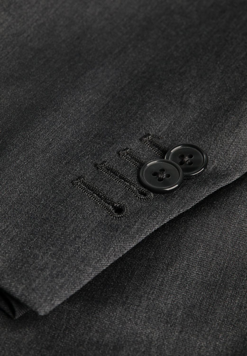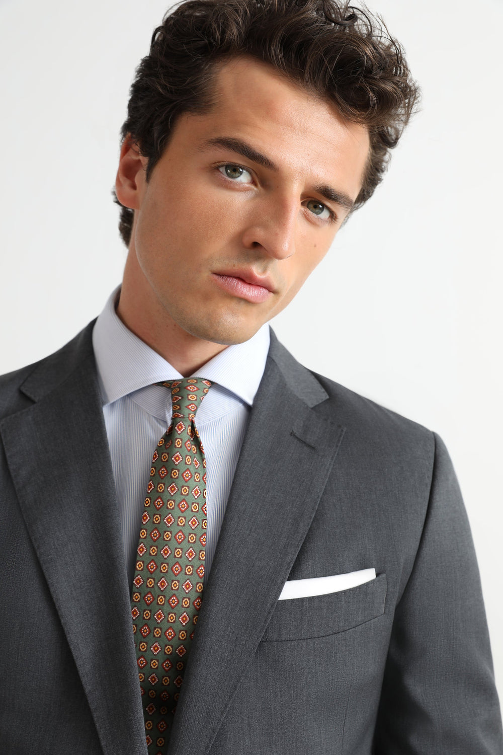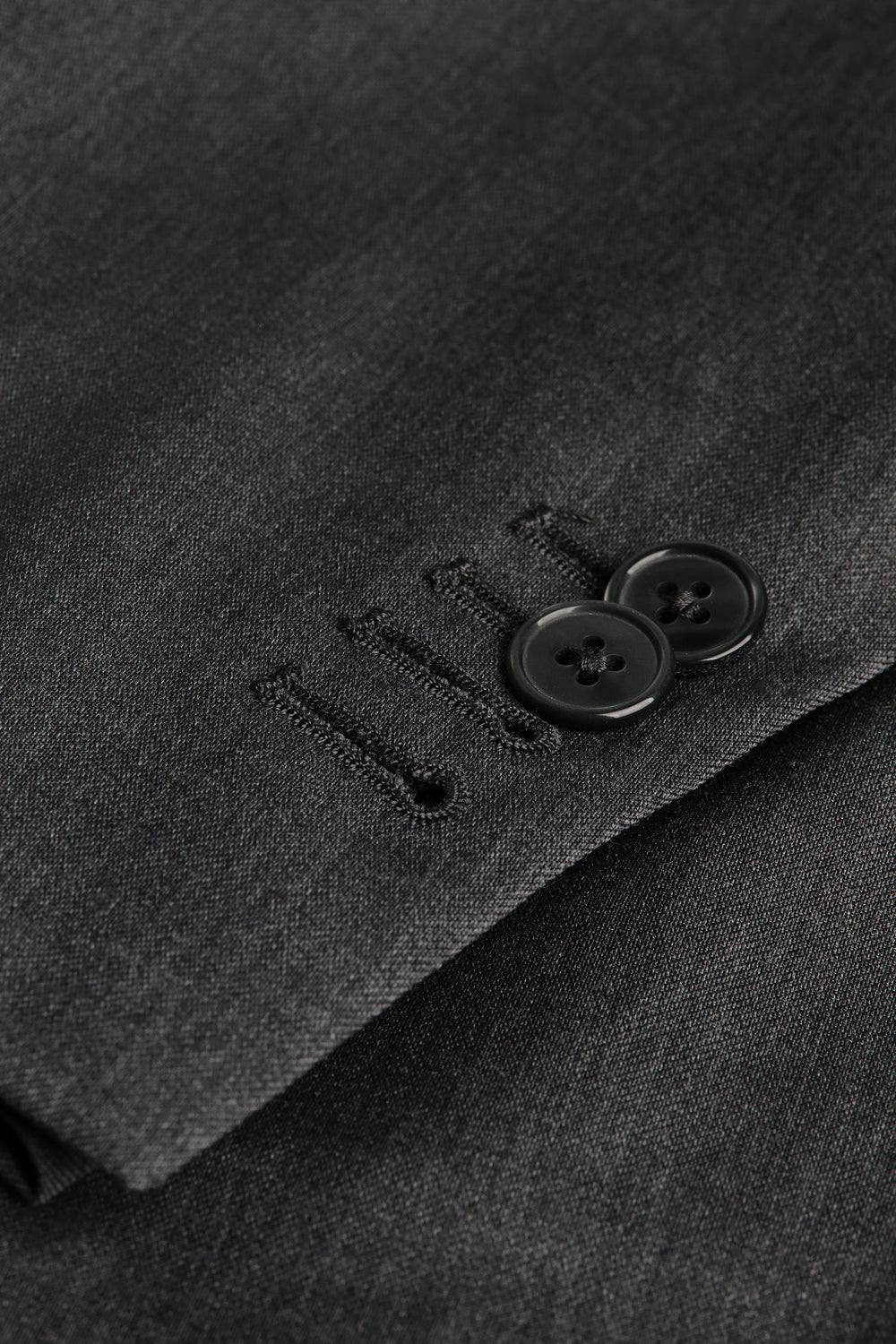 Grey textured suit. Crafted from 100% Marlane wool fabric. Regular Fit. Half lining. Blazer with notch lapels, button fastening, and flap pockets. Long sleeves with structured shoulder pads and functional buttonholes. Straight-leg trousers with extended buttoned waistband and zip fastening, finished with a plain hem.