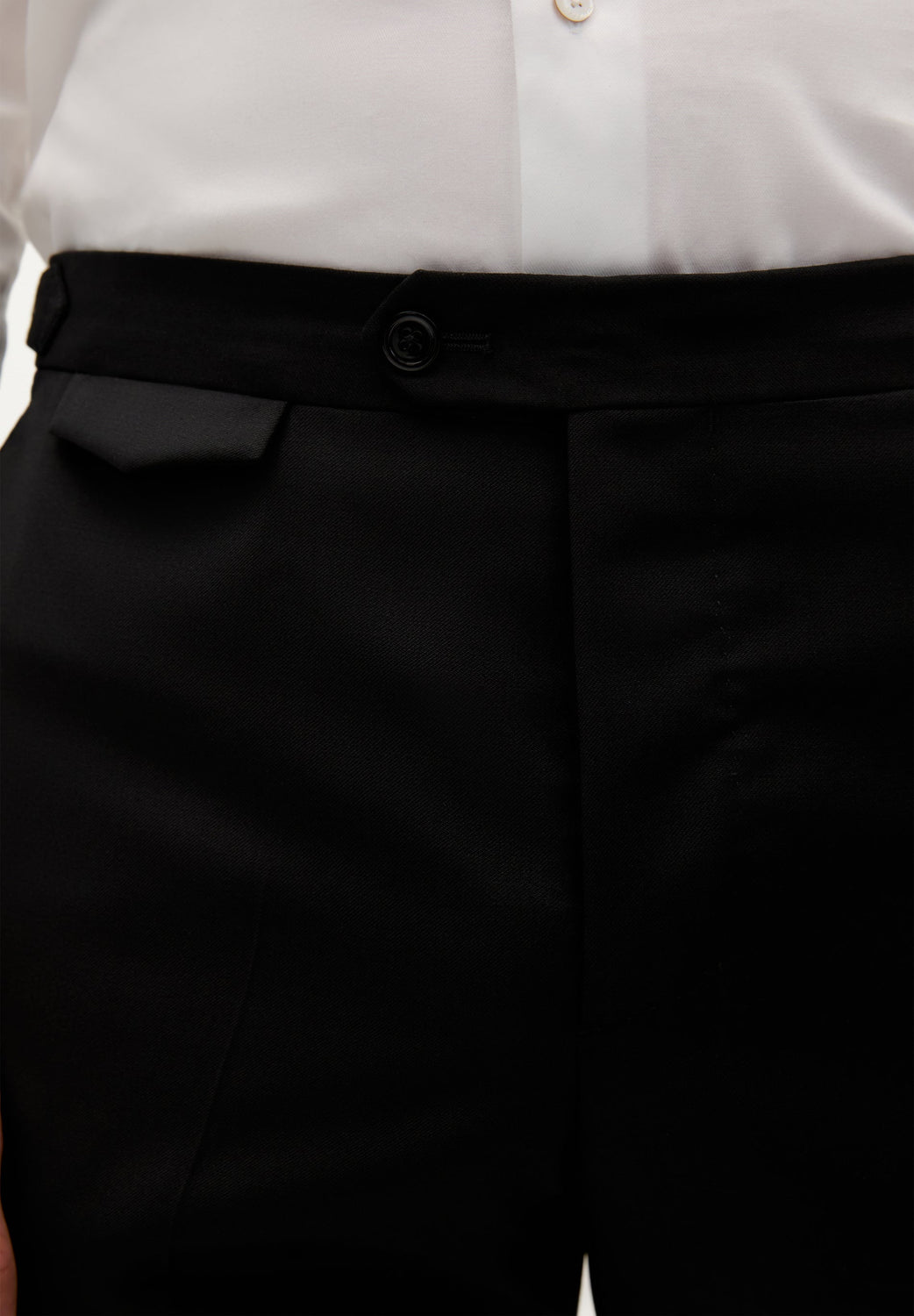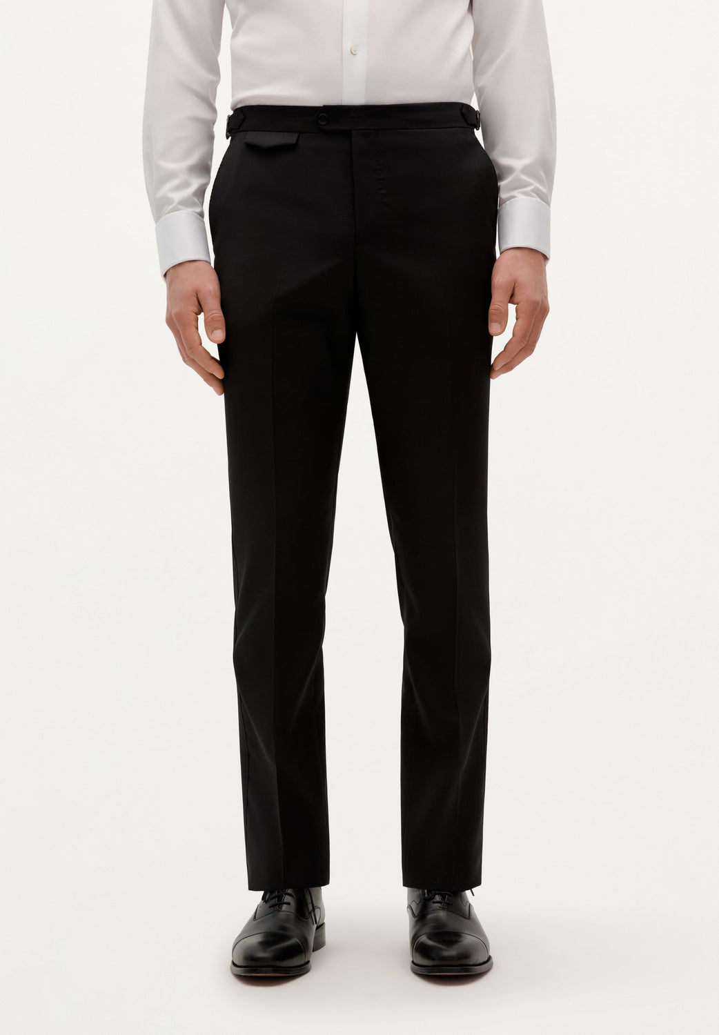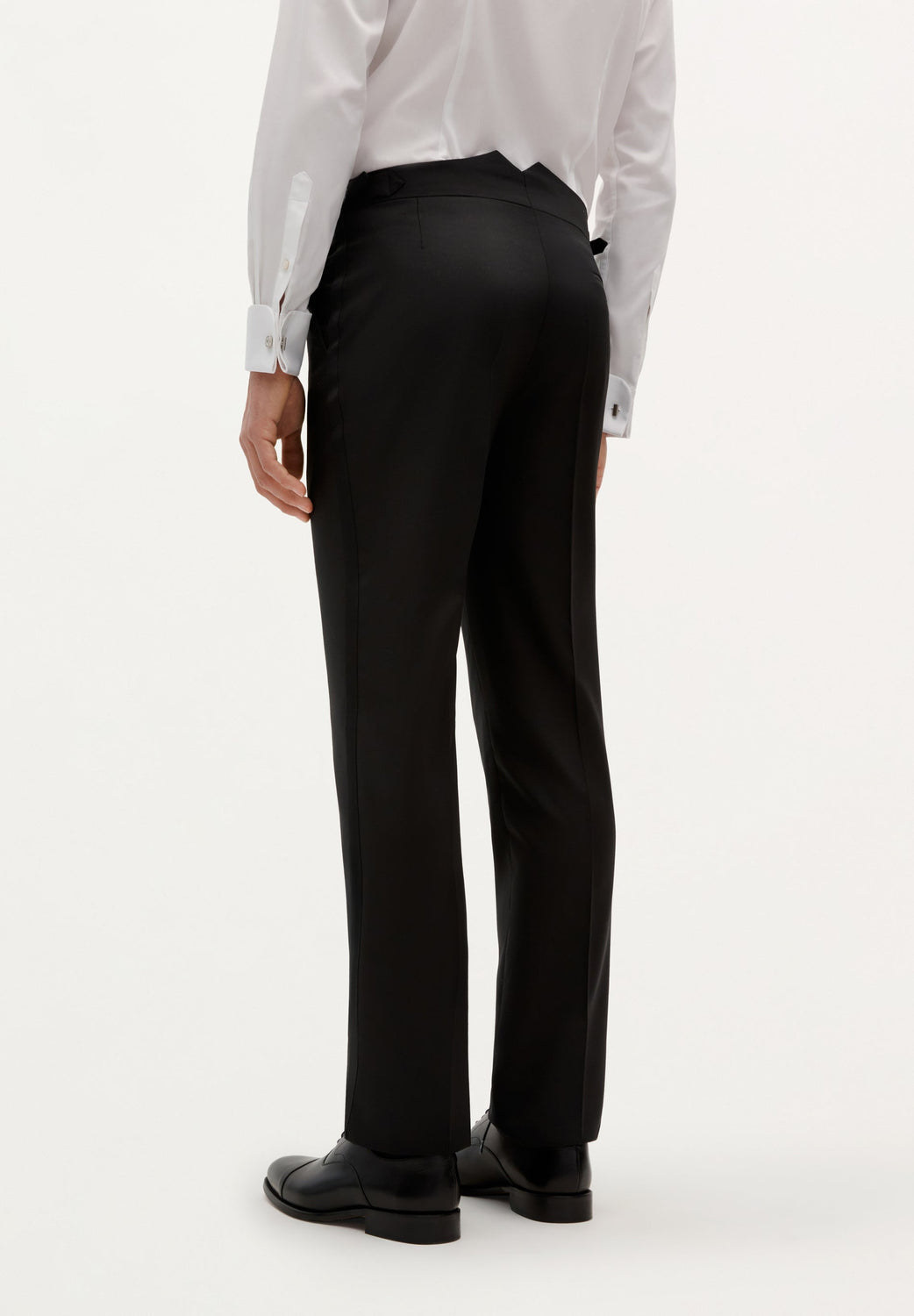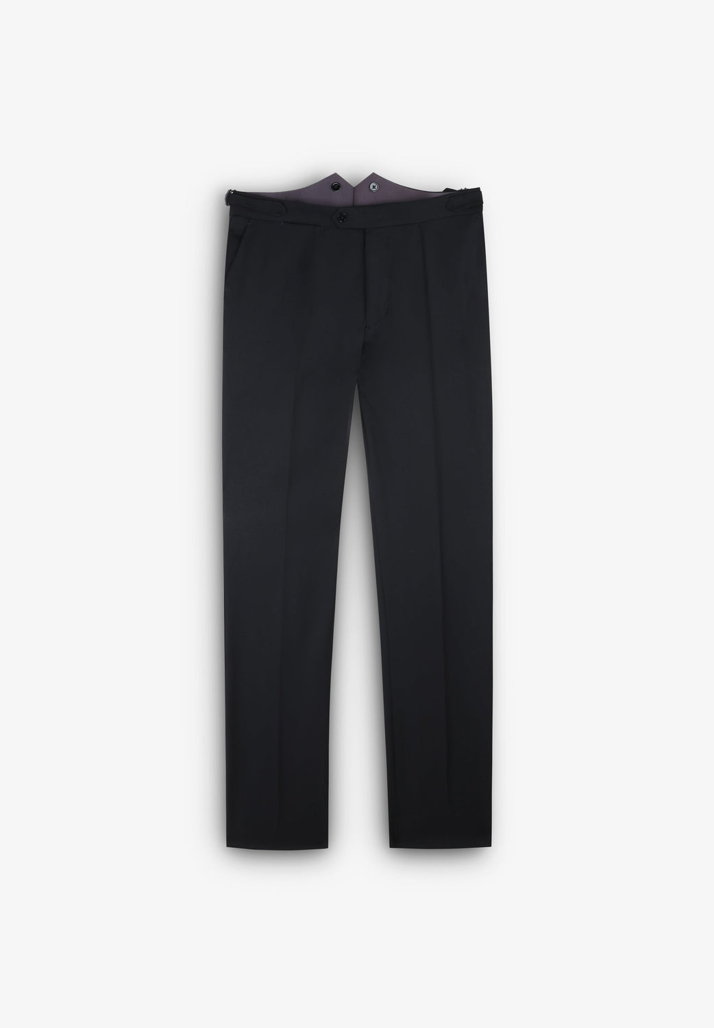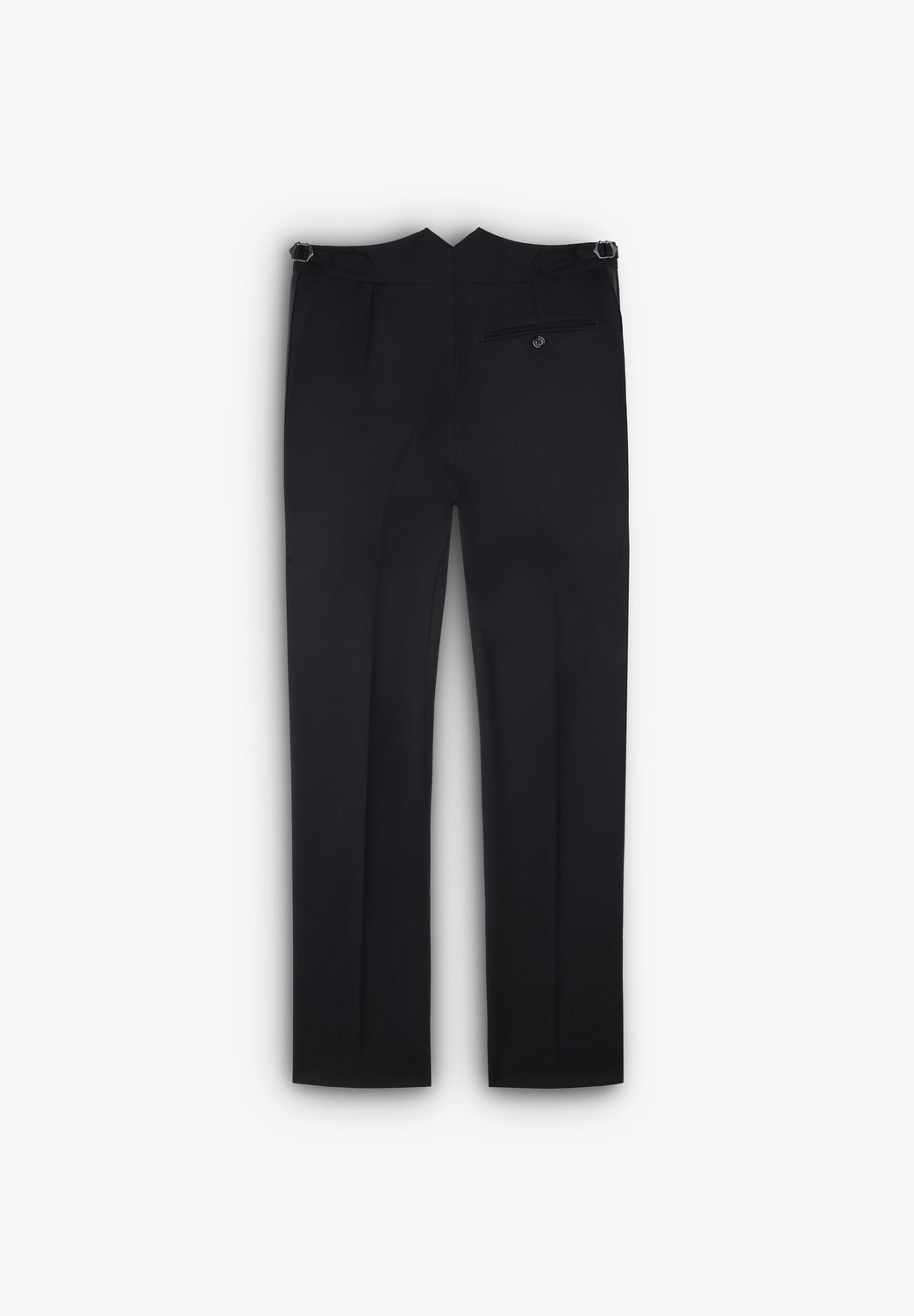 - Pantalón recto y fajín. Cierre prolongado con botón y cremallera. Botón para tirantes. Ceñidores laterales. Bajo sencillo sin vuelta. Bolsillos laterales y bolsillo trasero de doble vivo y botón.