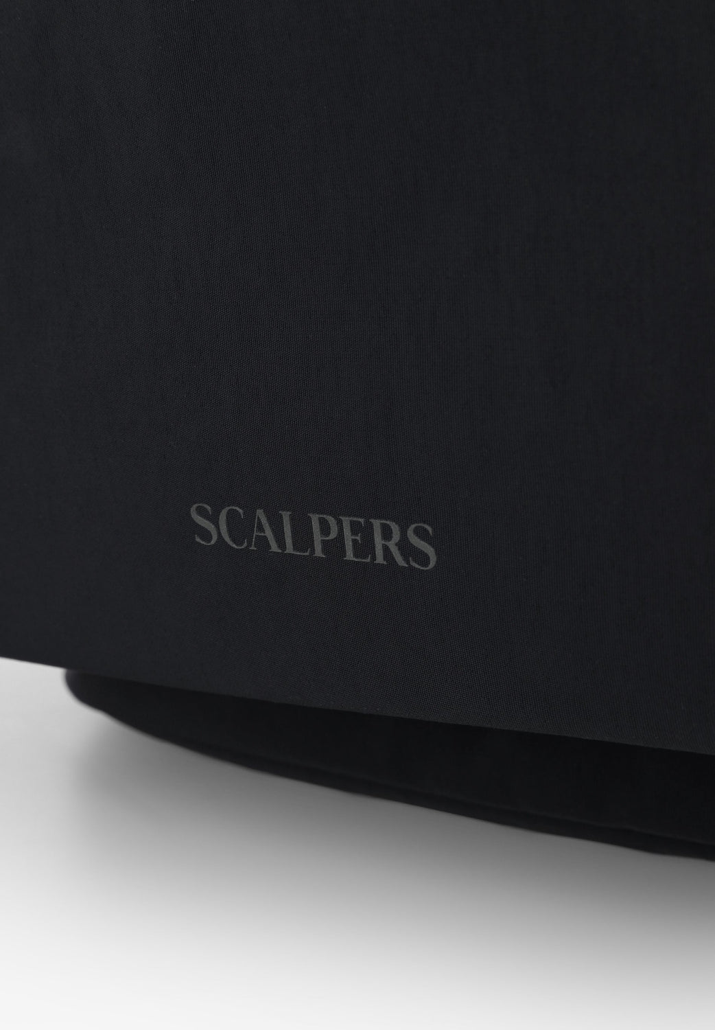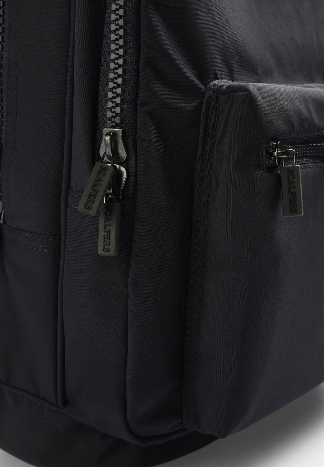 Sac à dos en tissu technique. Deux poches à compartiments, fermeture éclair et deux poignées arrière et sur le dessus. Poche avant à fermeture éclair et skull contrastant sur le devant.