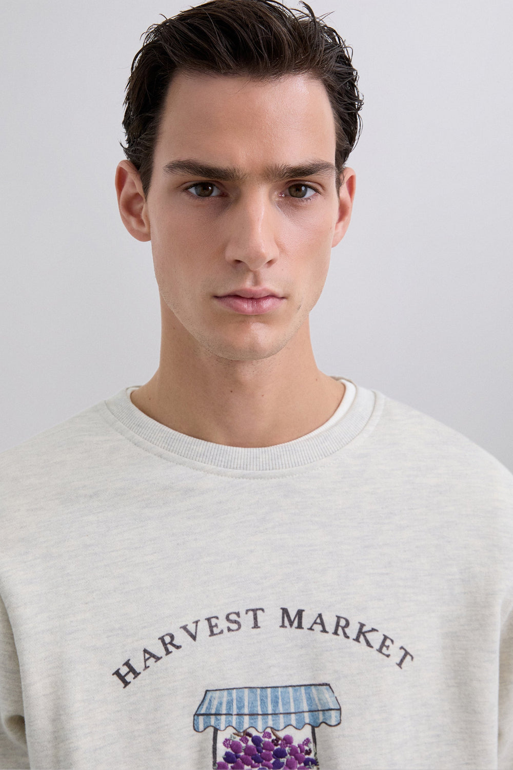 Sweatshirt made of 100% BCI cotton. Regular fit, round neck and long sleeves with ribbed cuffs. Front print on chest with embroidered details.