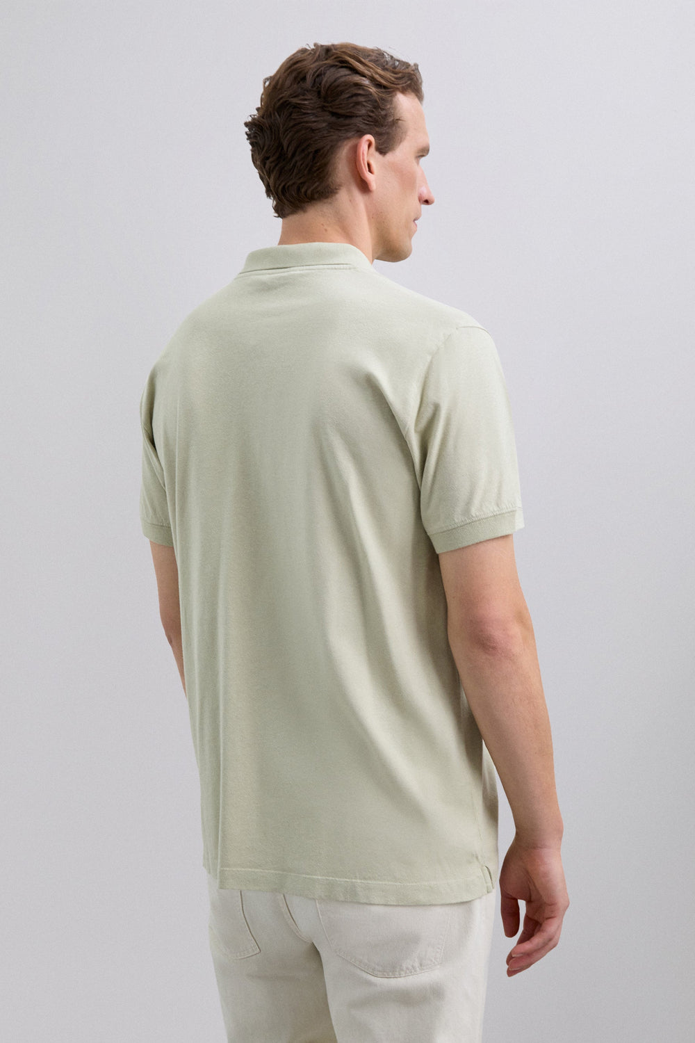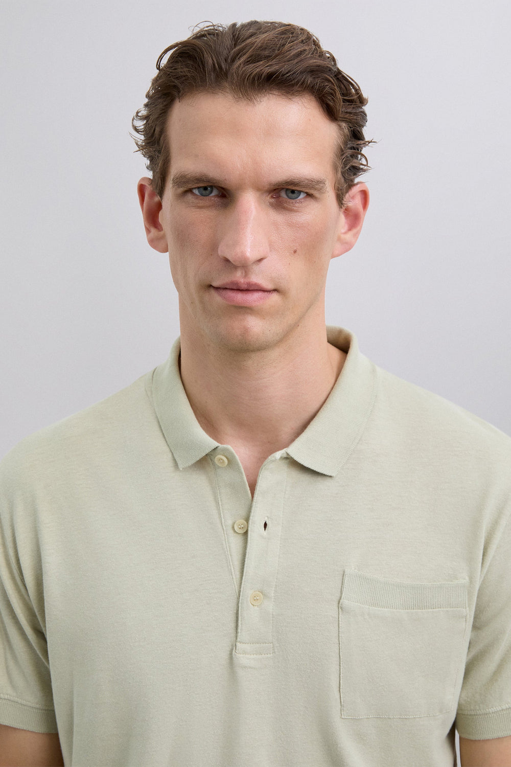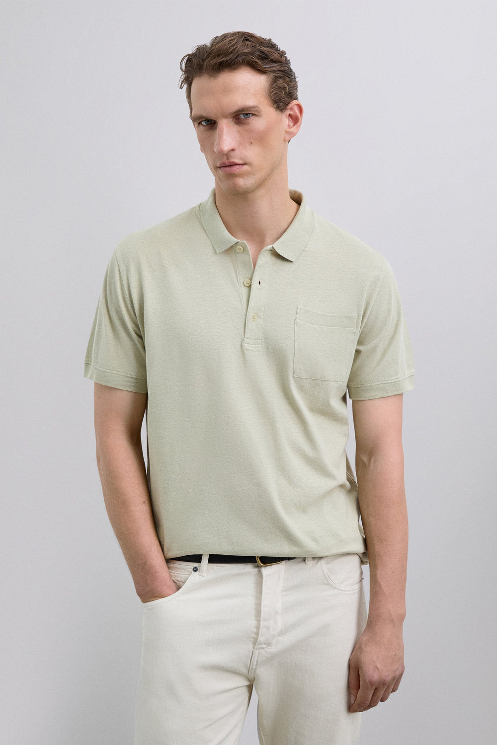 Polo en coton BCI. Coupe droite, col italien et poche devant.