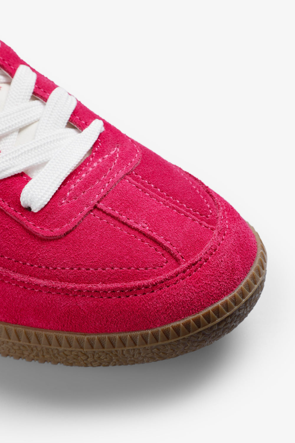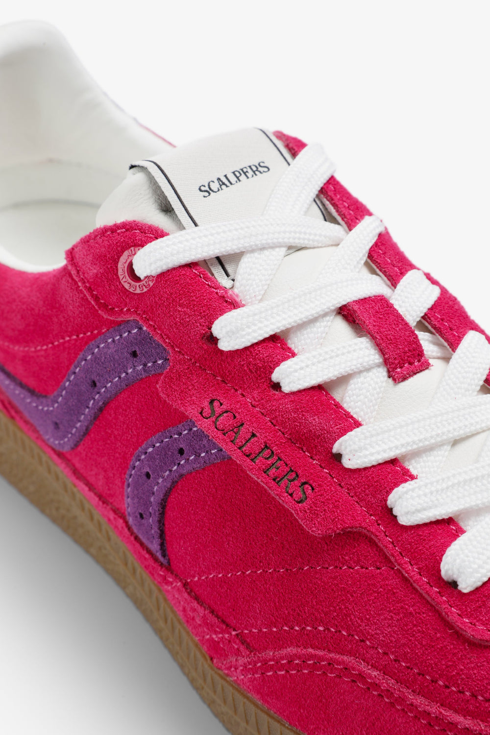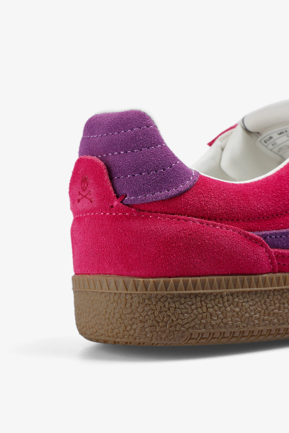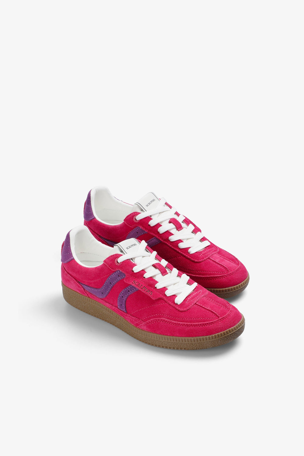 Tennis 100 % croûte de cuir. Semelle contrastante en caoutchouc. Logo contrastant sur le côté, la languette et à l’arrière. Coutures ton sur ton.