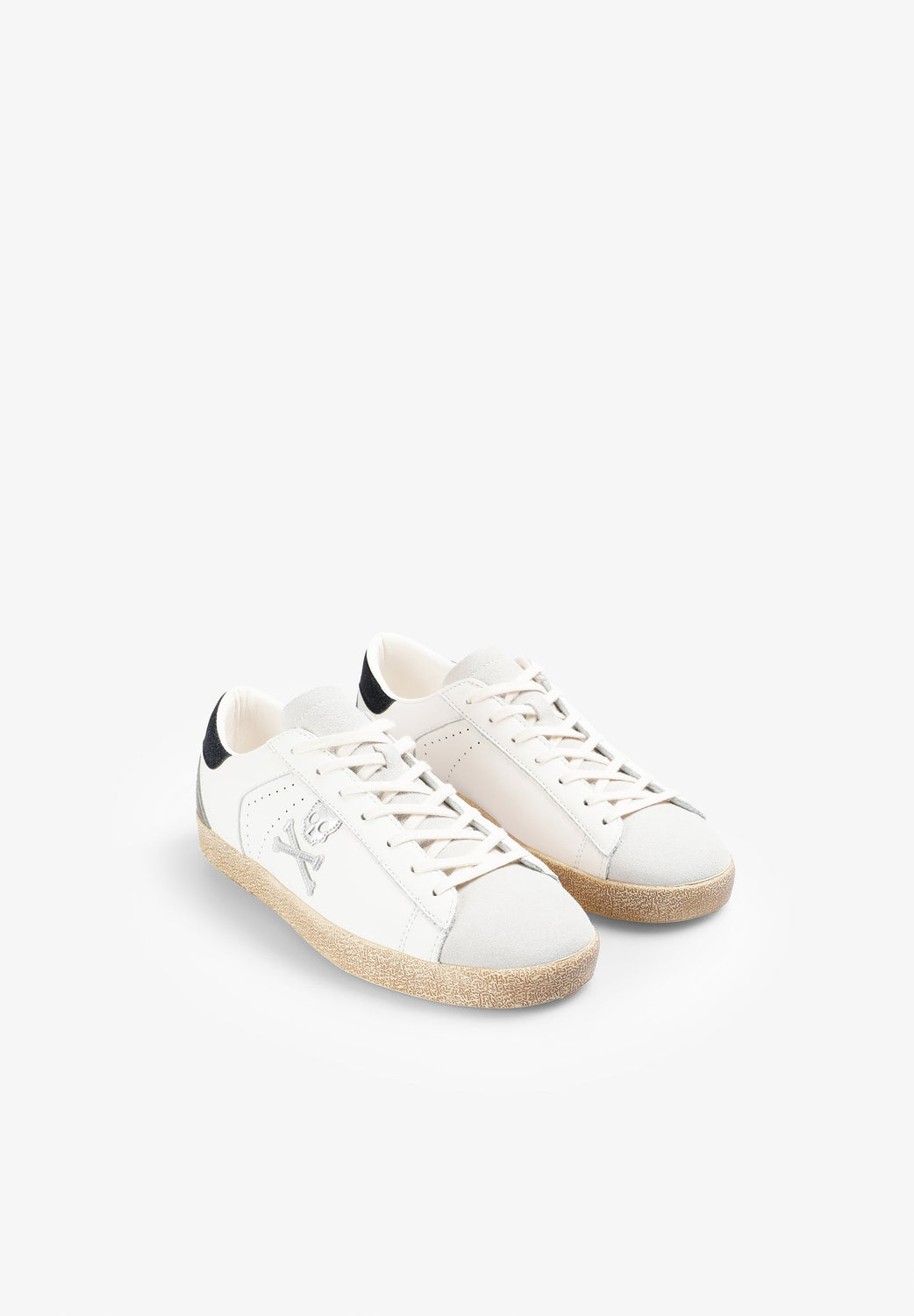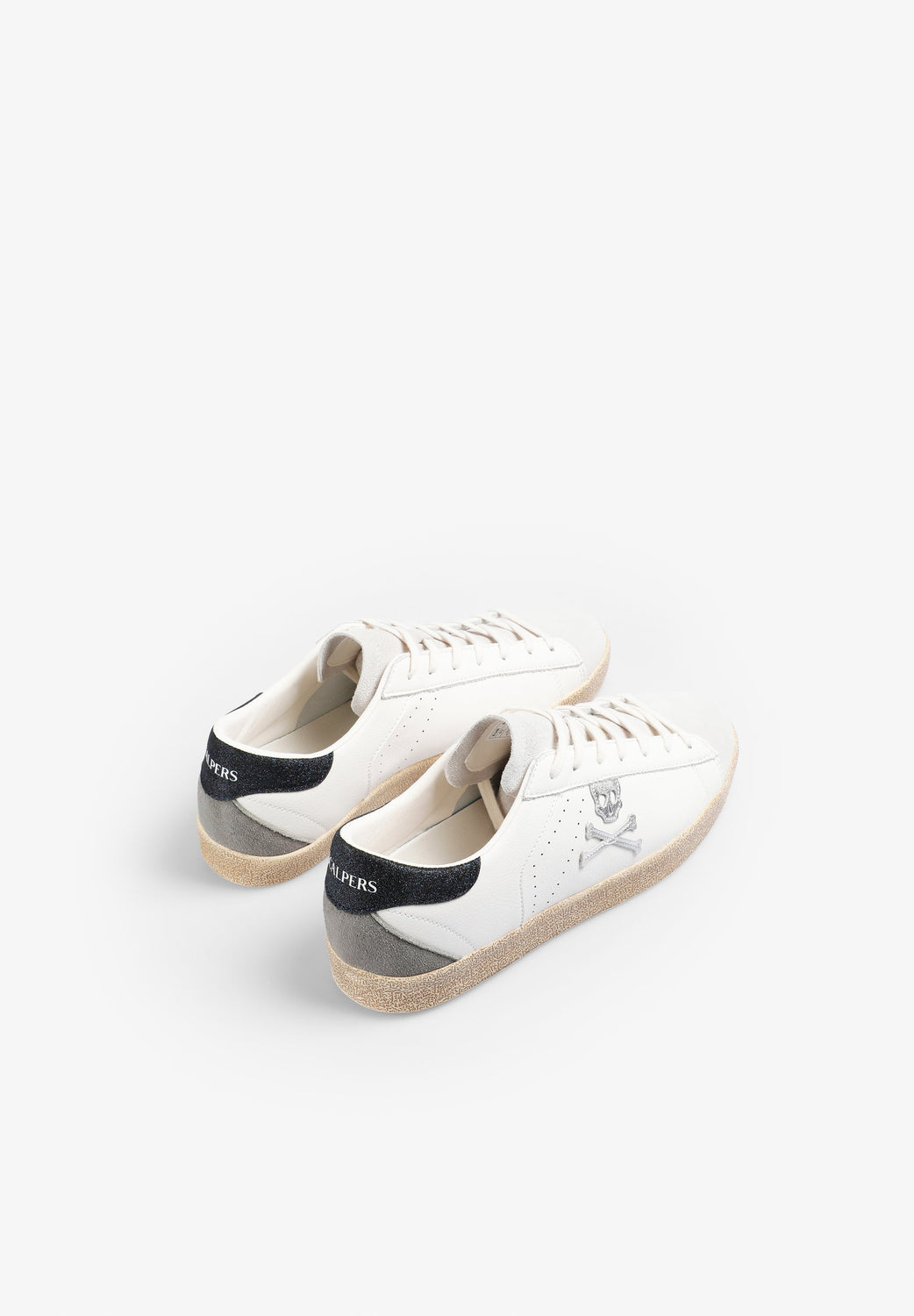 Tennis basses skull avec imprimé motif animal. Fabriquées en cuir avec une semelle en caoutchouc à effet usé. Lacets.