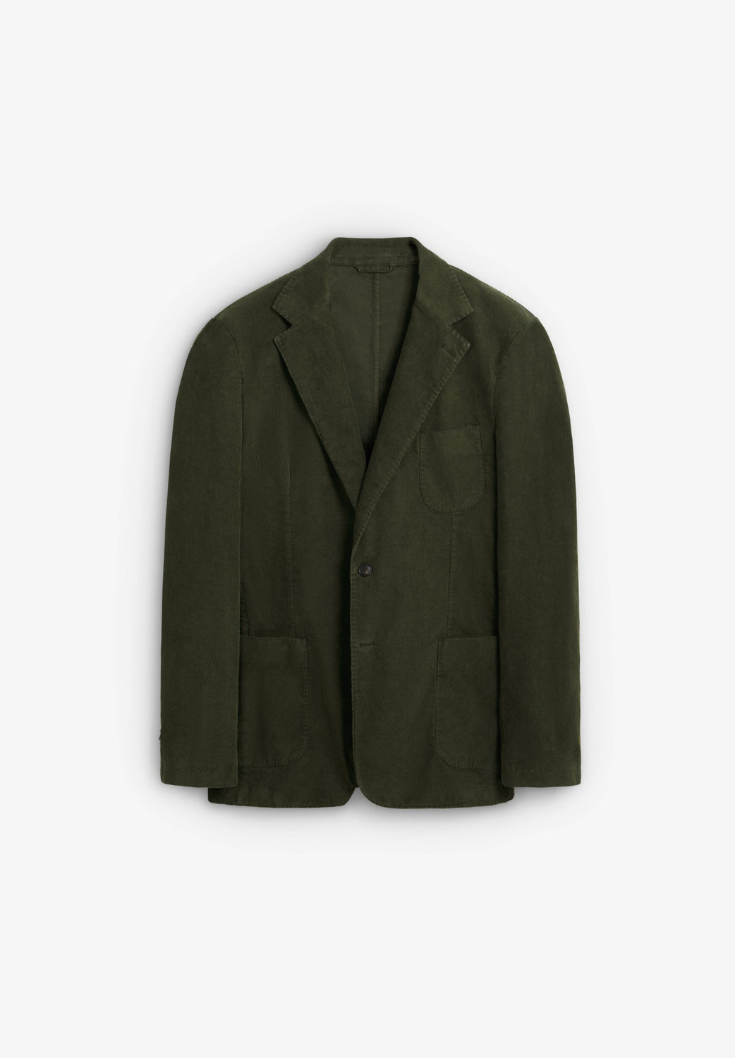Veste en velours côtelé en coton. Coupe droite. Revers cranté. Fermeture devant boutonnée. Manches longues et poignets boutonnés. Fausses poches.