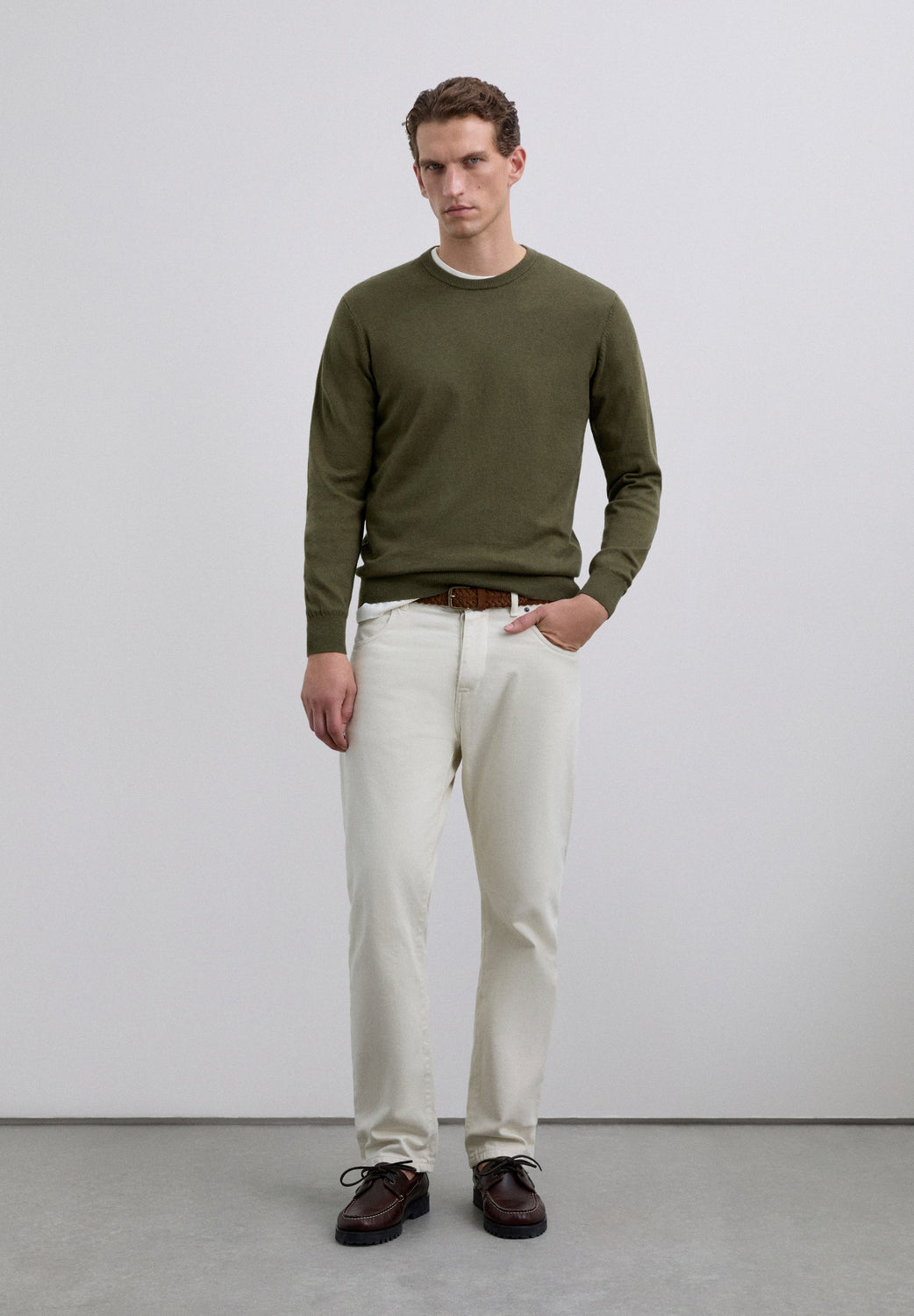 Pull en coton. Manches longues. Col rond. Skull brodé ton sur ton sur la poitrine. Finitions en bord-côte.
