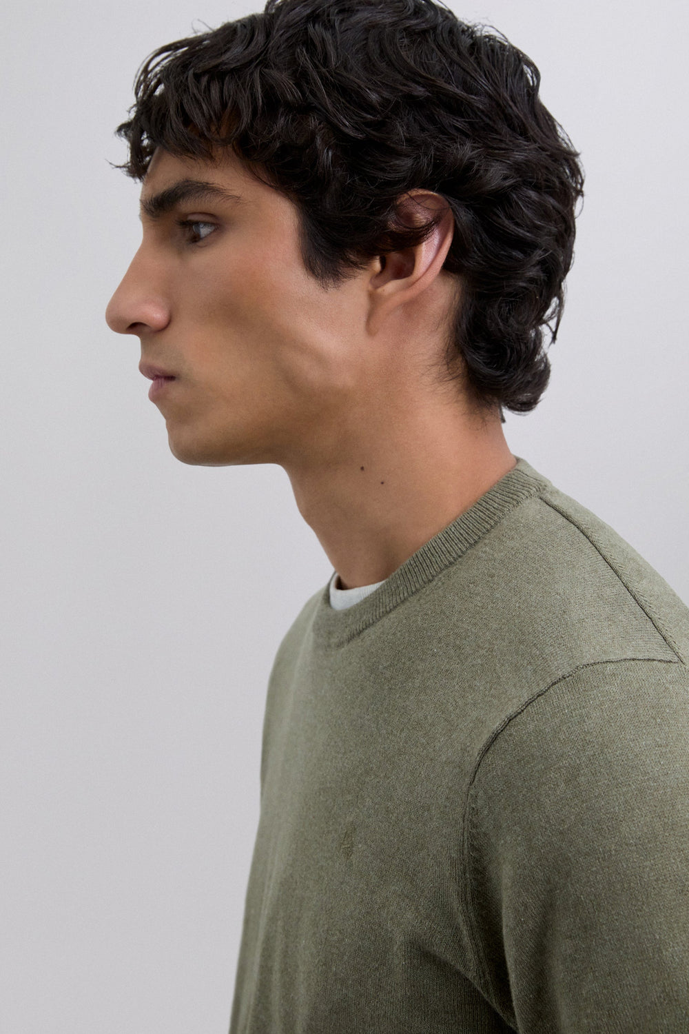 Pull en maille confectionné en coton. Coupe droite. Manches longues. Col rond. Finitions en bord-côte.