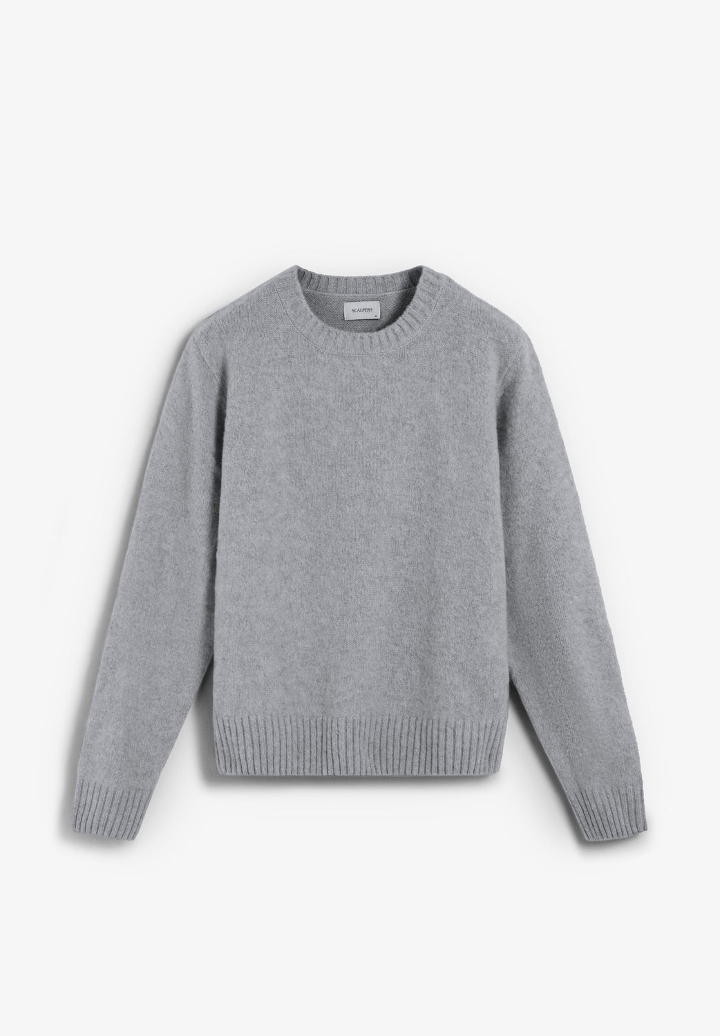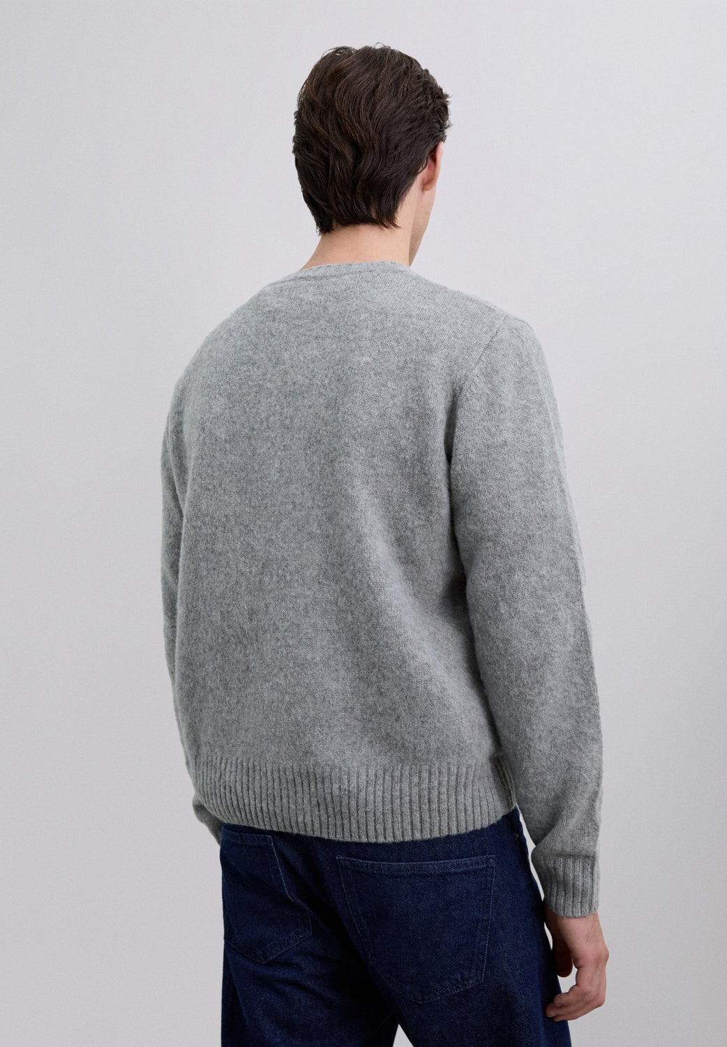 Pull 100 % laine. Effet brossé. Col rond. Manches longues. Coupe droite. Finitions en bord-côte.
