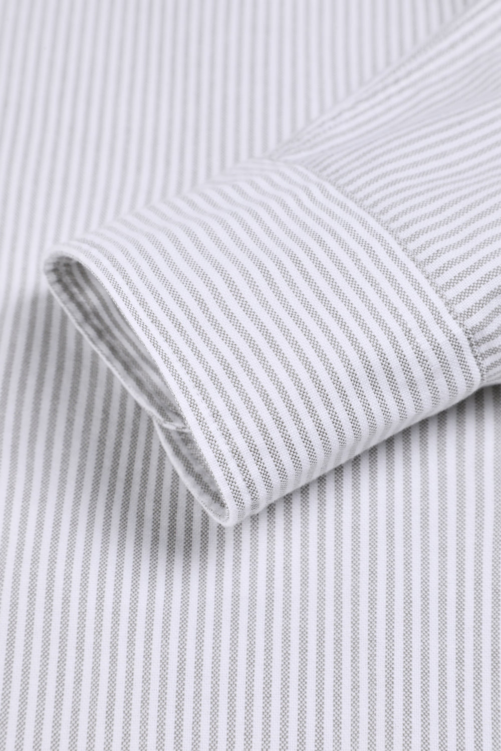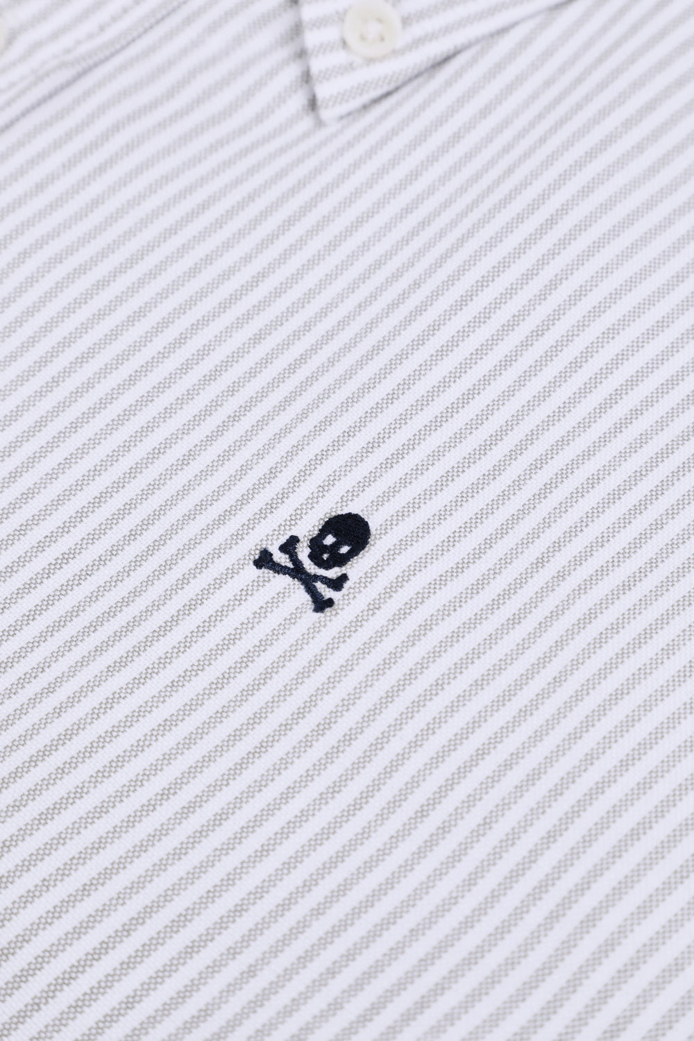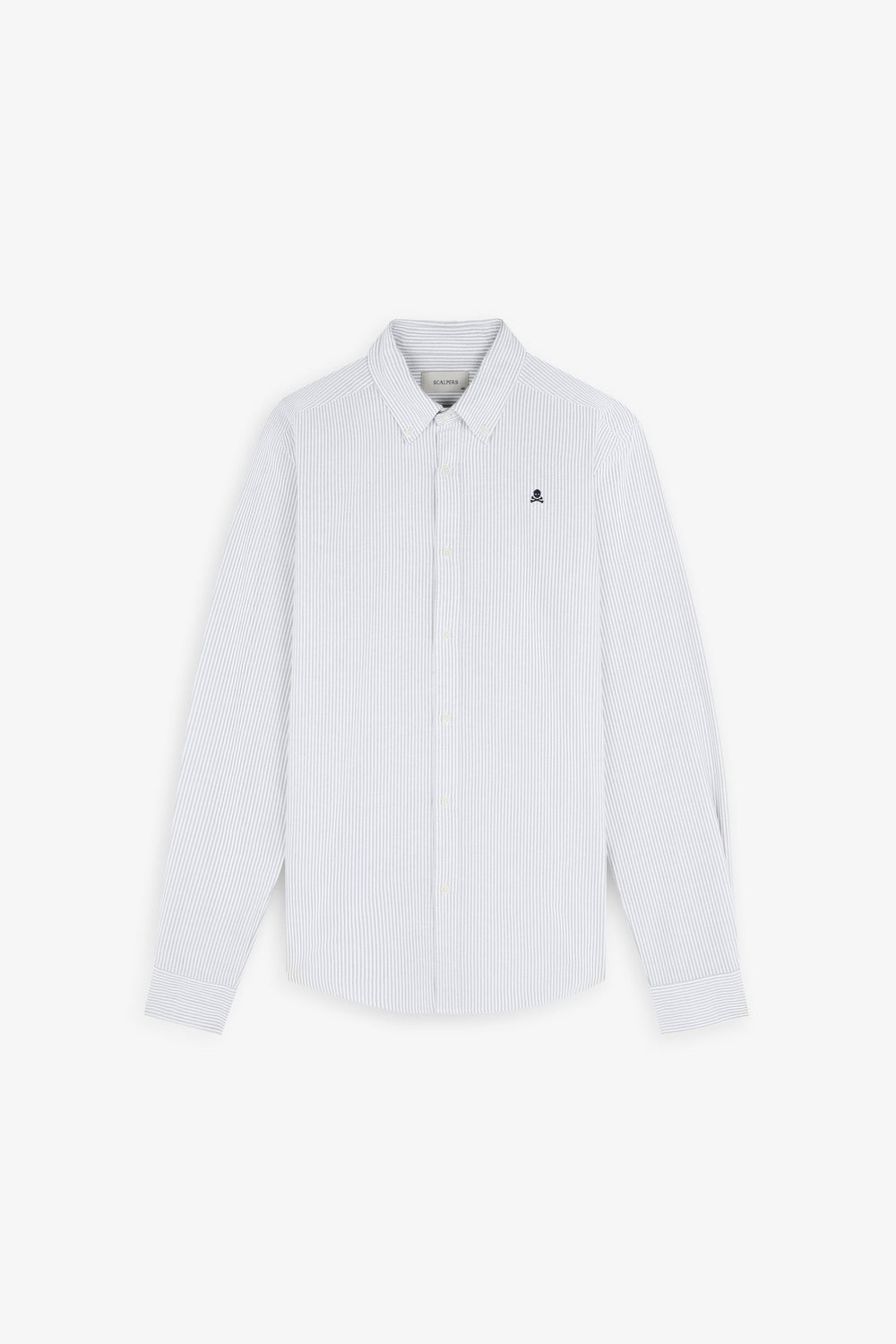 Chemise à rayures 100 % coton BCI. Col italien, boutons, coupe droite, skull contrastant sur la poitrine. Poignets boutonnés.