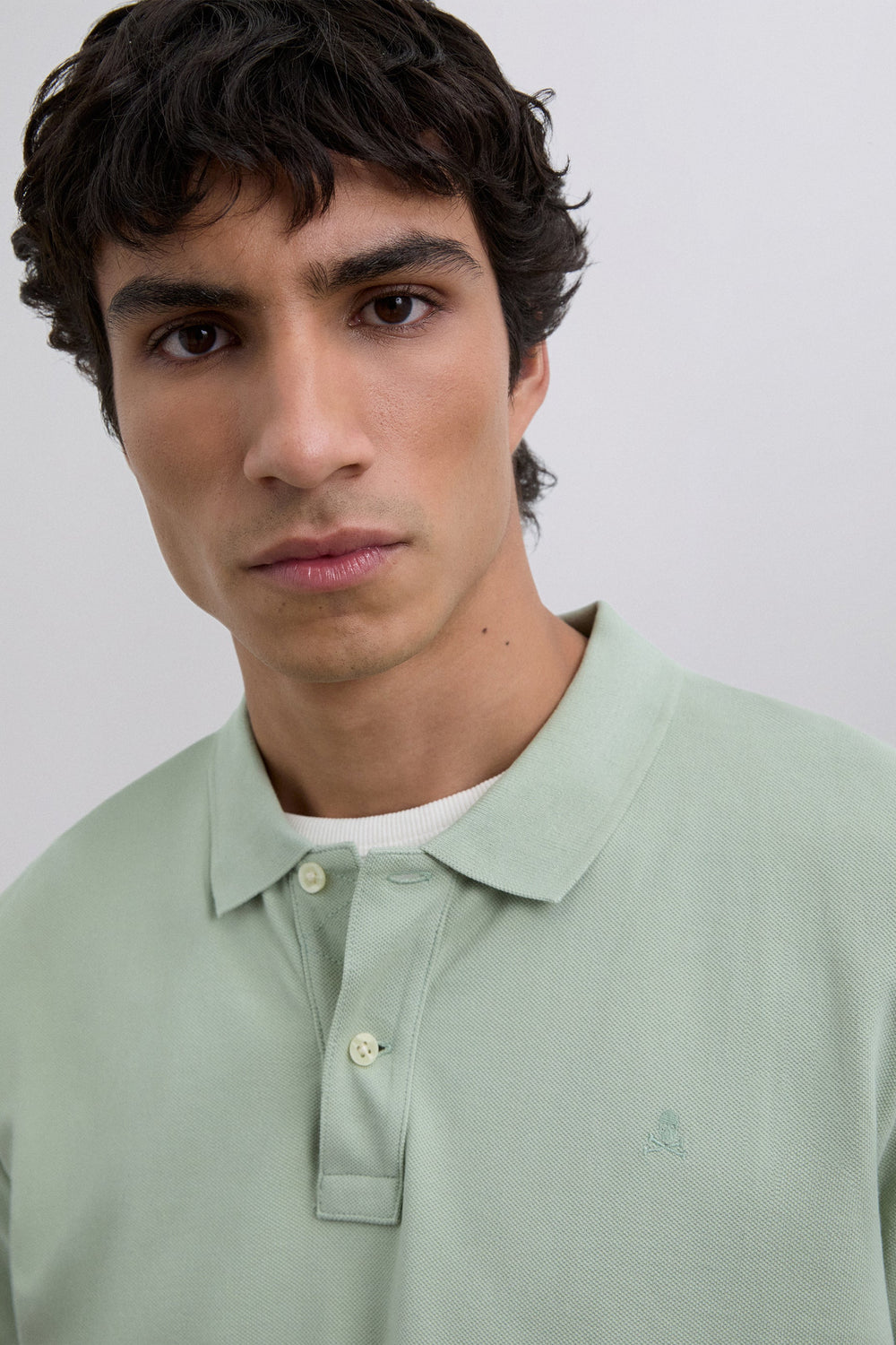 Polo basique 100 % coton BCI. Coupe droite, col italien et fermeture boutonnée. Manches courtes et logo brodé ton sur ton.