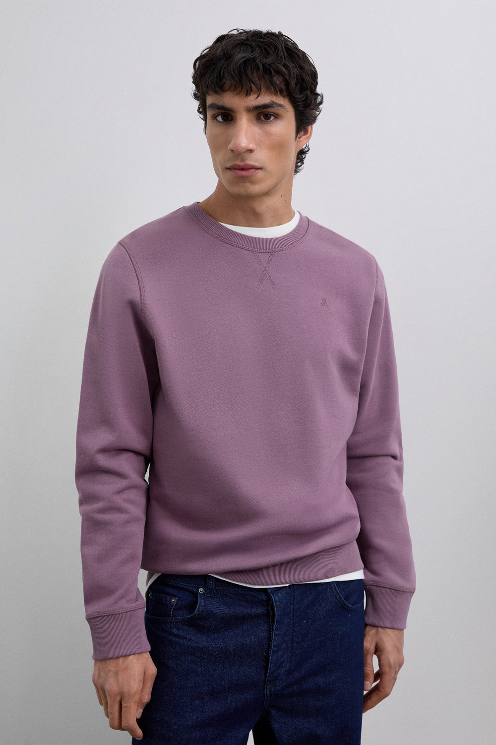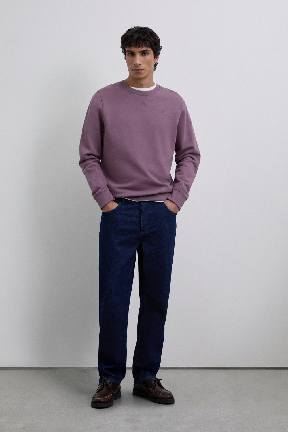 Sweat basique 100 % coton BCI. Coupe droite, col rond et manches longues. Skull brodé ton sur ton.