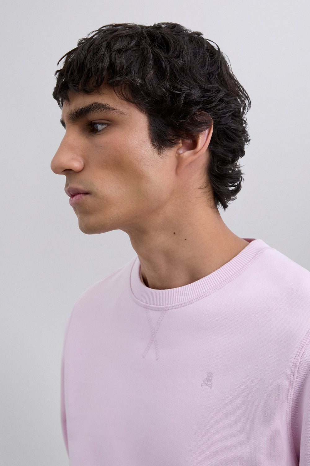 Sweat basique 100 % coton BCI. Coupe droite, col rond et manches longues. Skull brodé ton sur ton.