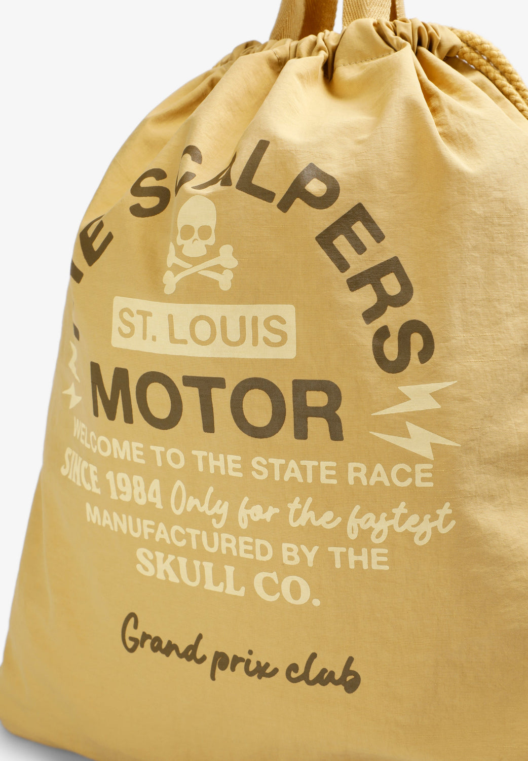 Sac léger synthétique. Poignée. Bretelles. Imprimé devant avec logo.