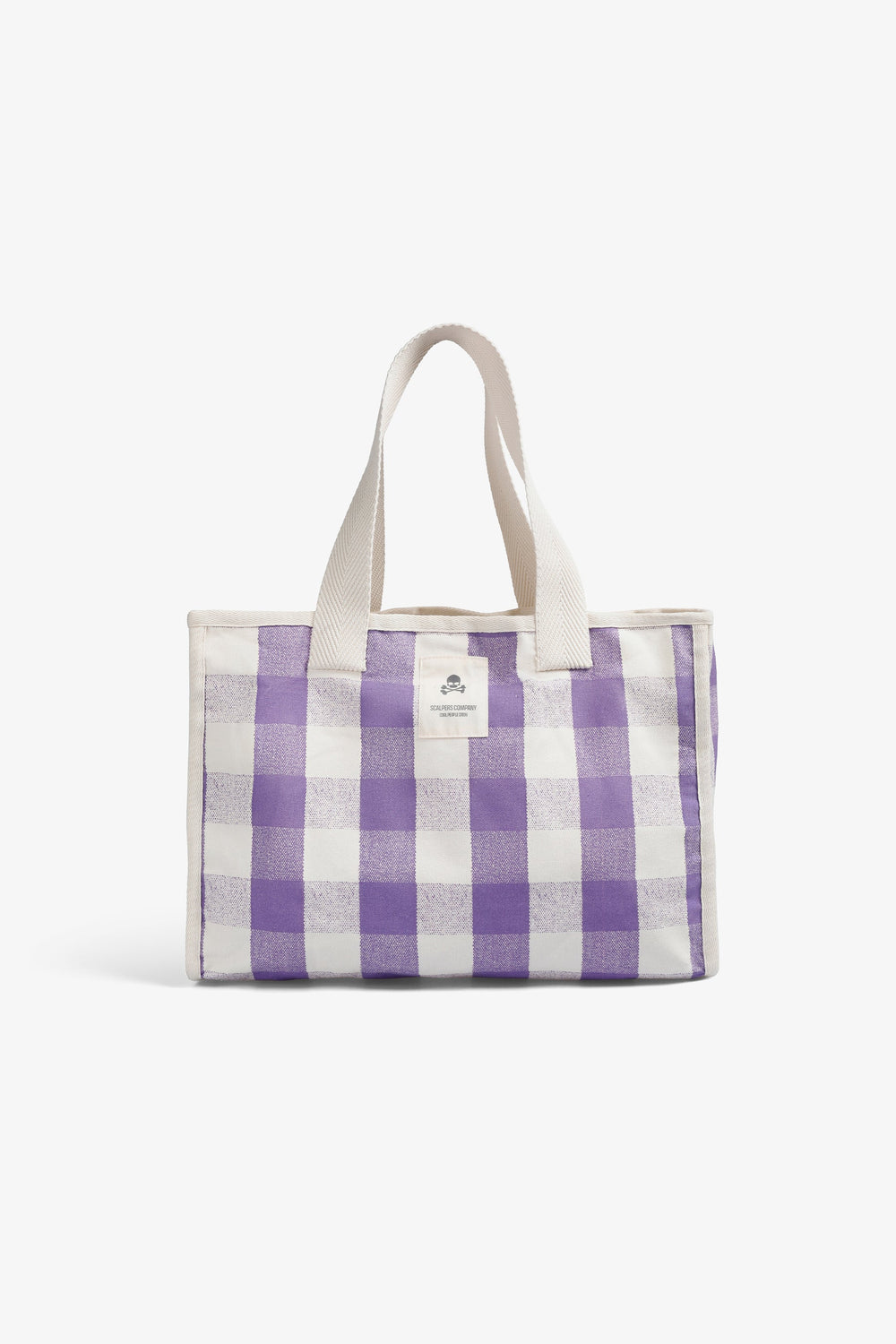 Sac cabas 100 % coton. Double poignée. Étiquette devant avec logo et skull. Imprimé carreaux