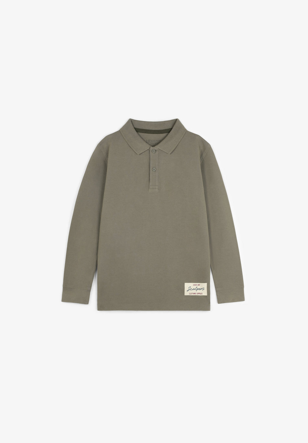 Polo 100 % coton BCI. Coupe droite. Manches longues. Col italien boutonné. Logo brodé dans le dos et imprimé skull. Écusson brodé en bas devant.