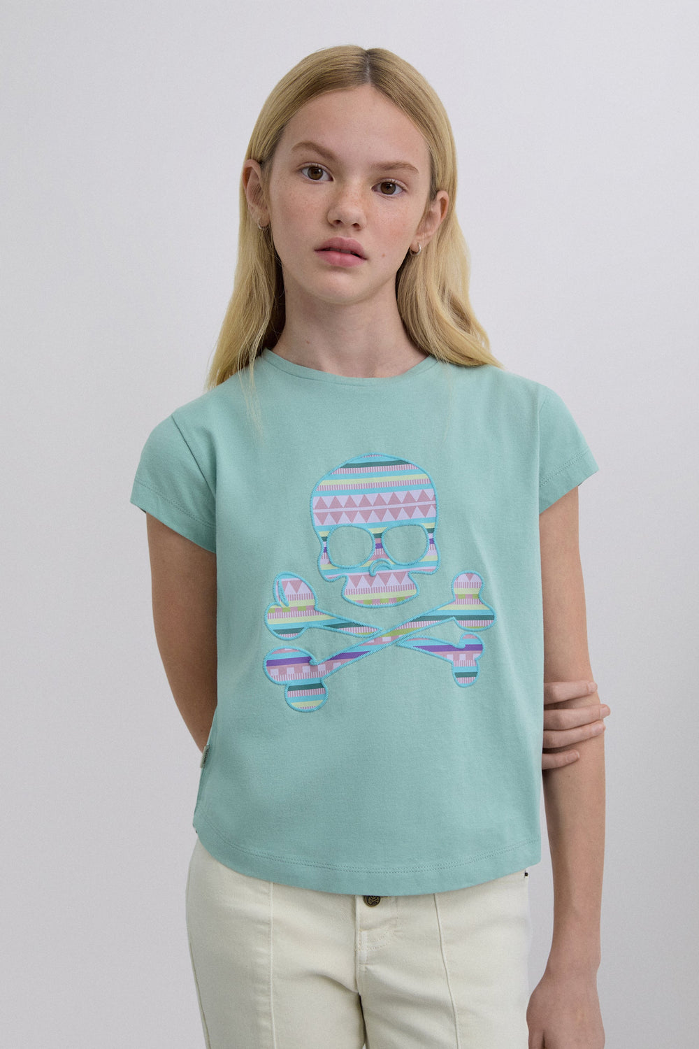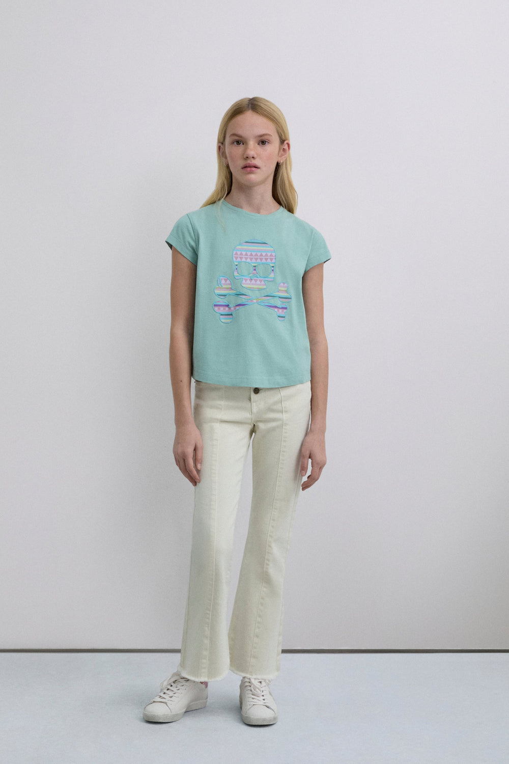 T-shirt confectionné en 100 % coton BCI. Coupe droite. Imprimé skull devant. Col rond. Manches courtes.