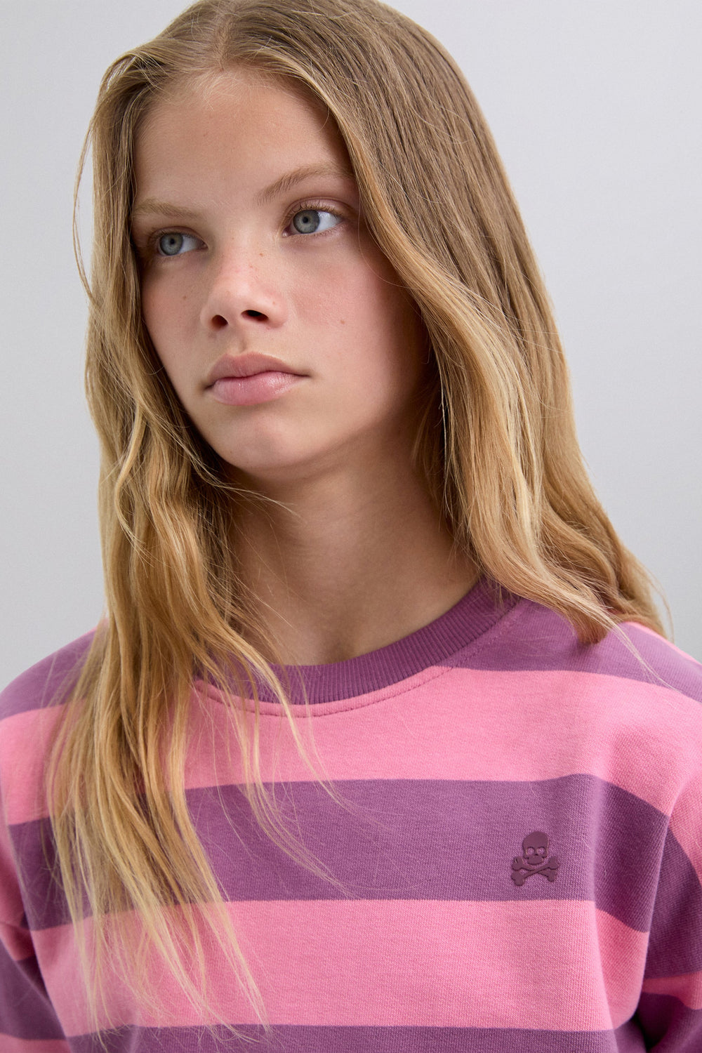 Sweat à rayures 100 % coton BCI. Col rond. Finitions en bord-côte au col et aux poignets. Logo skull sur la poitrine et étiquette dans le dos.