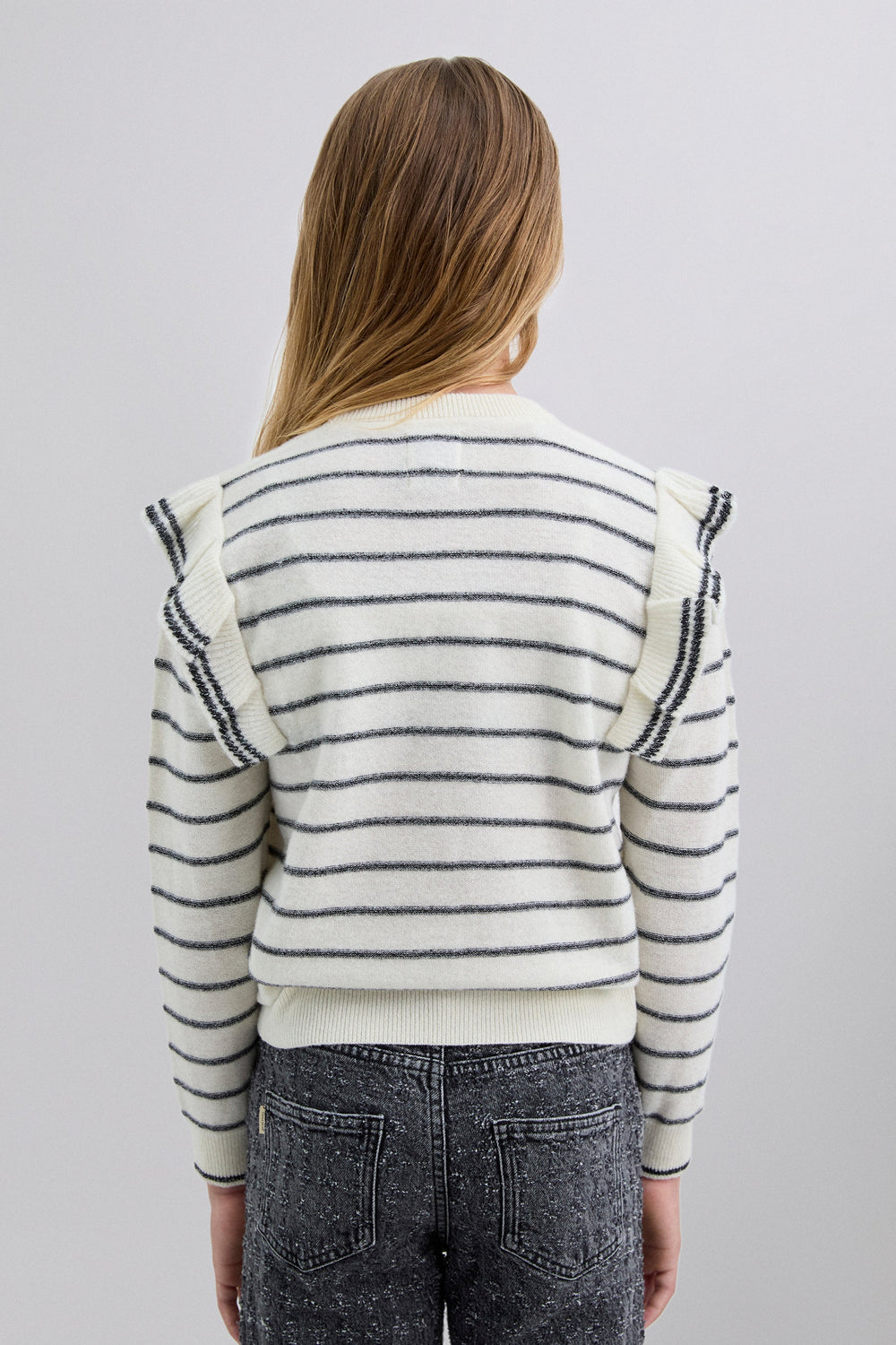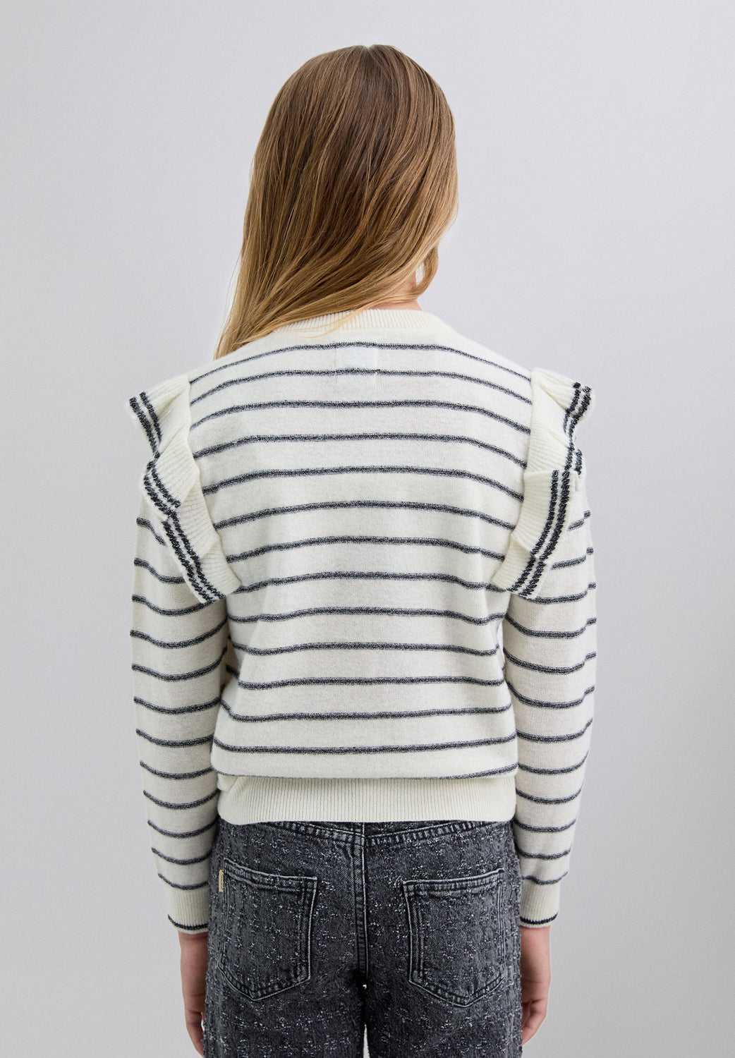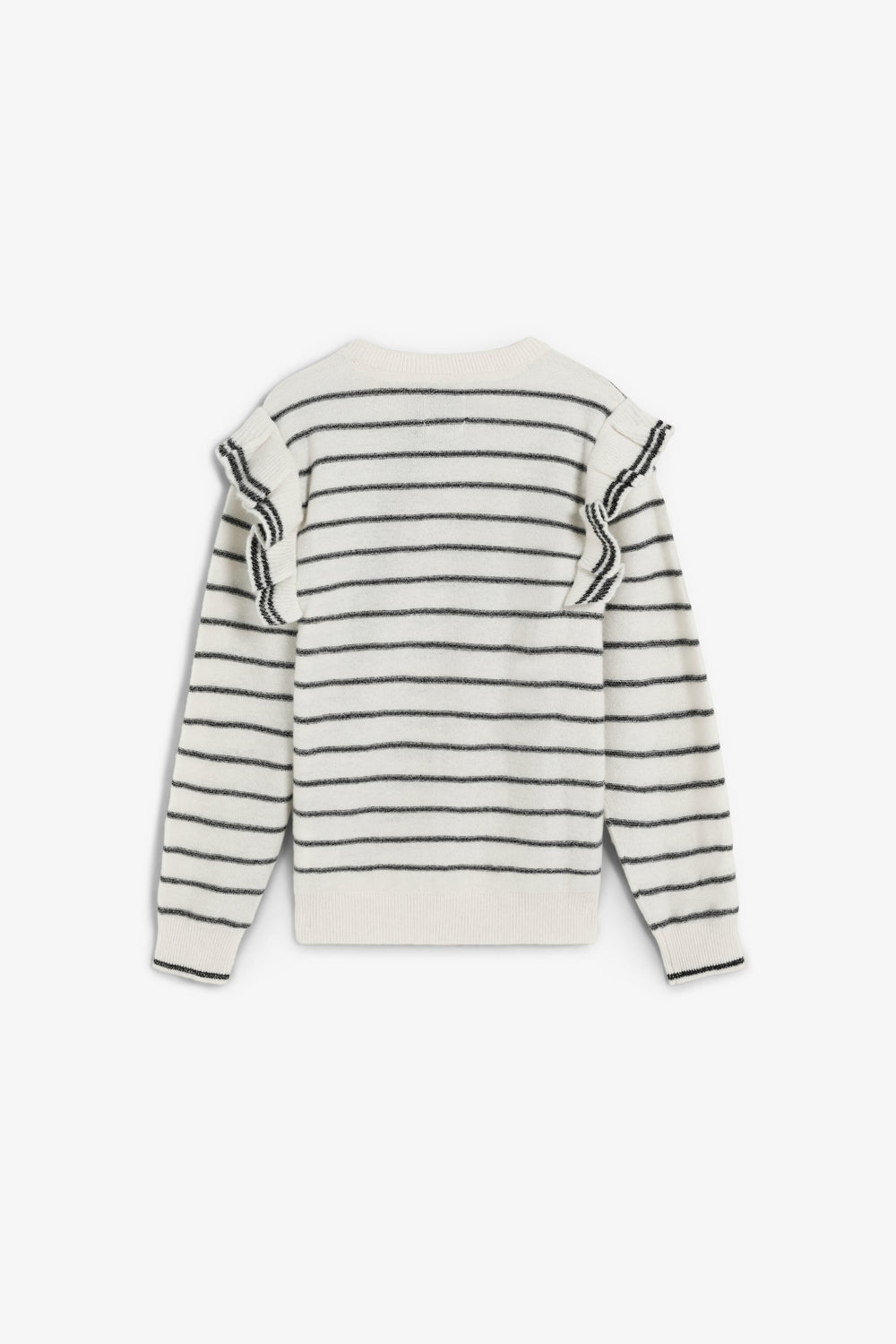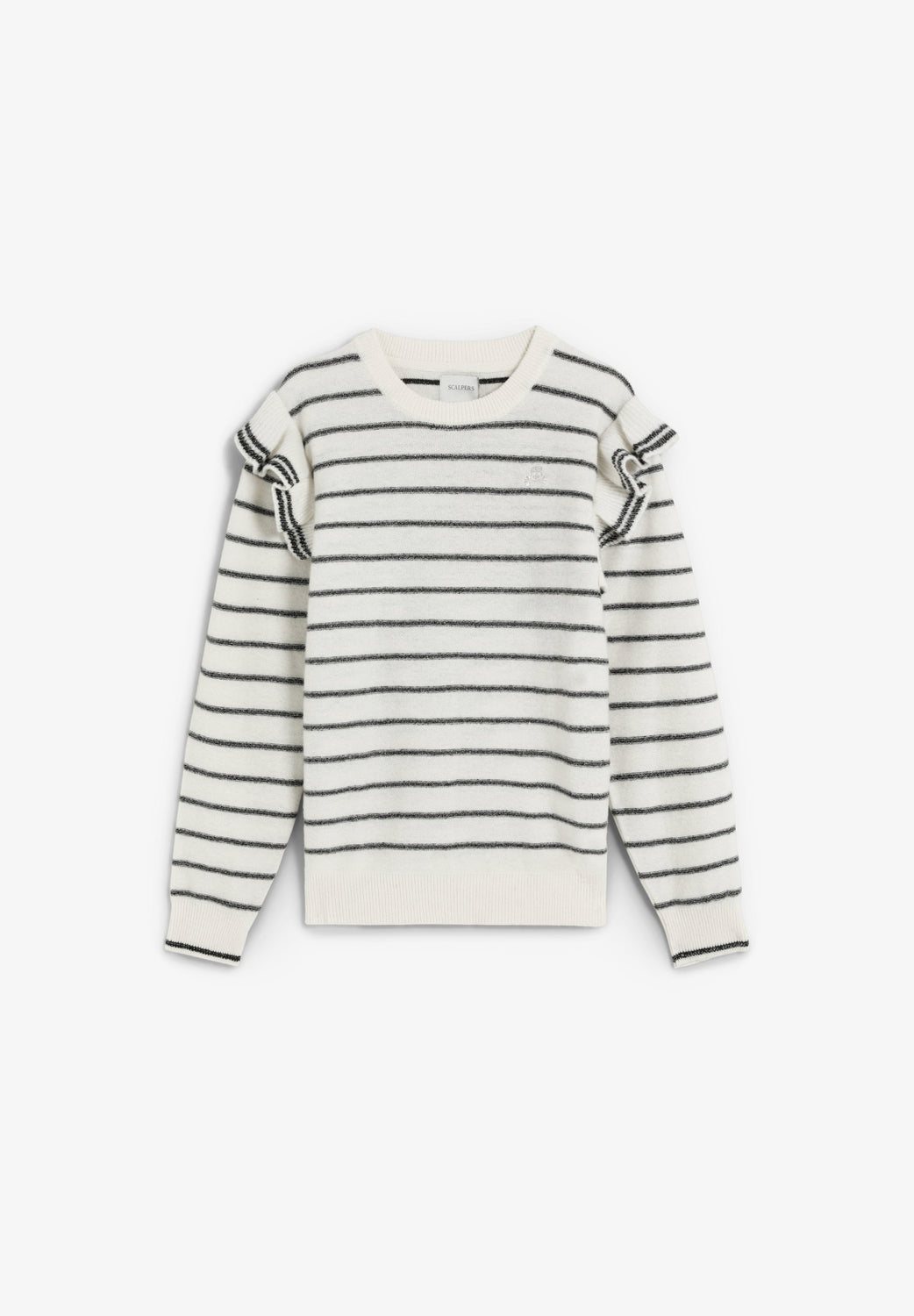 Pull à rayures en maille confectionné dans un mélange de laine. Col rond. Coupe droite. Volants sur les épaules et logo sur la poitrine.