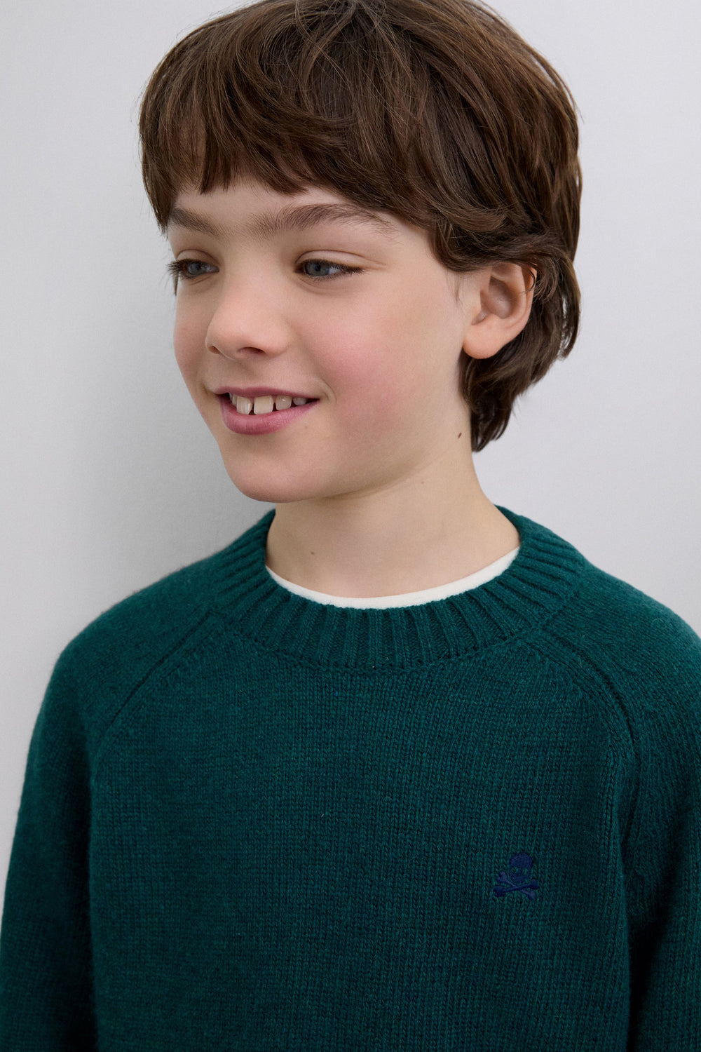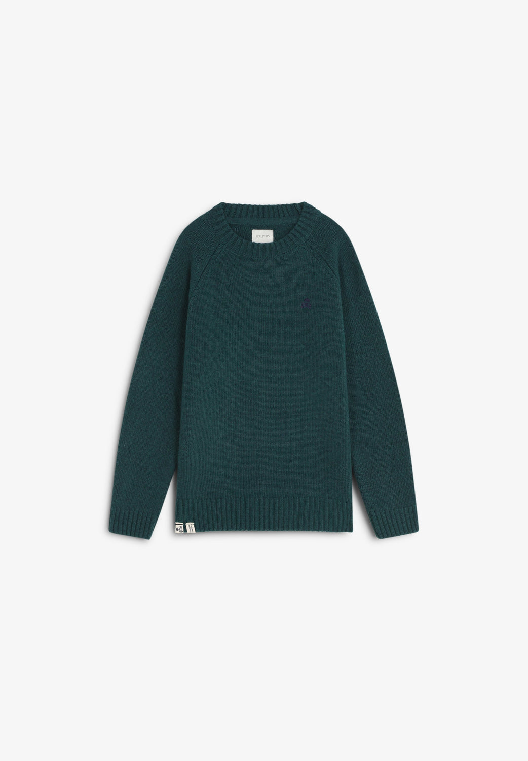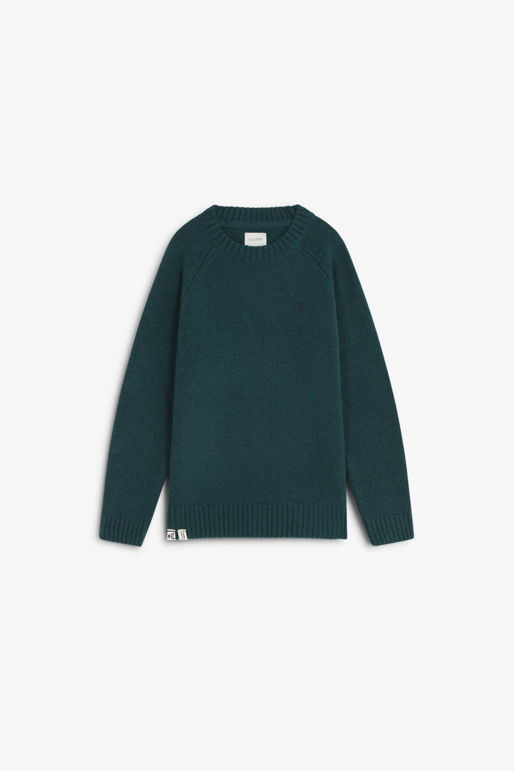 Pull à manches longues. Col rond. Coupe droite. Finitions en bord-côte. Logo brodé devant.