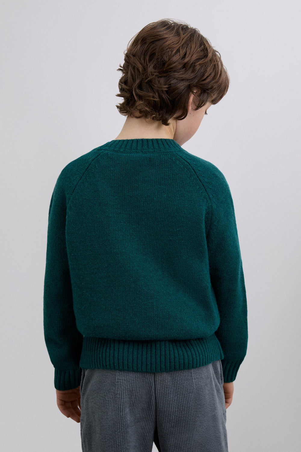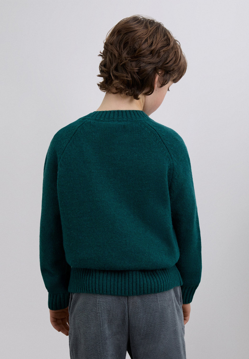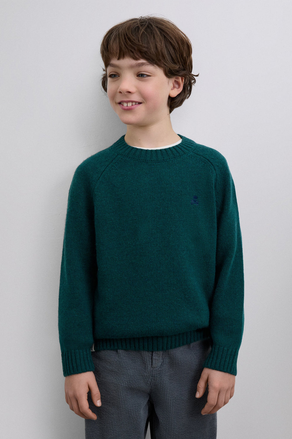 Pull à manches longues. Col rond. Coupe droite. Finitions en bord-côte. Logo brodé devant.