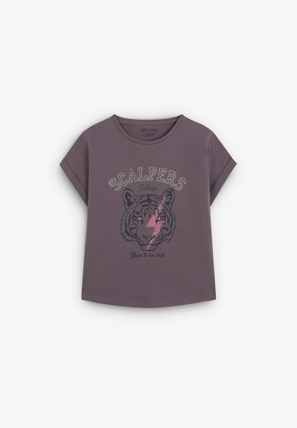T-shirt confectionné en 100 % coton BCI. Manches courtes. Col rond. Imprimé à strass devant.
