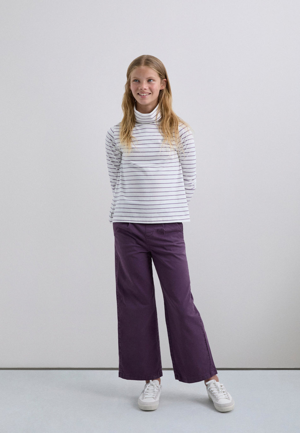 T-shirt à rayures 100 % coton BCI. Manches longues et col roulé. Logo sur la poitrine.