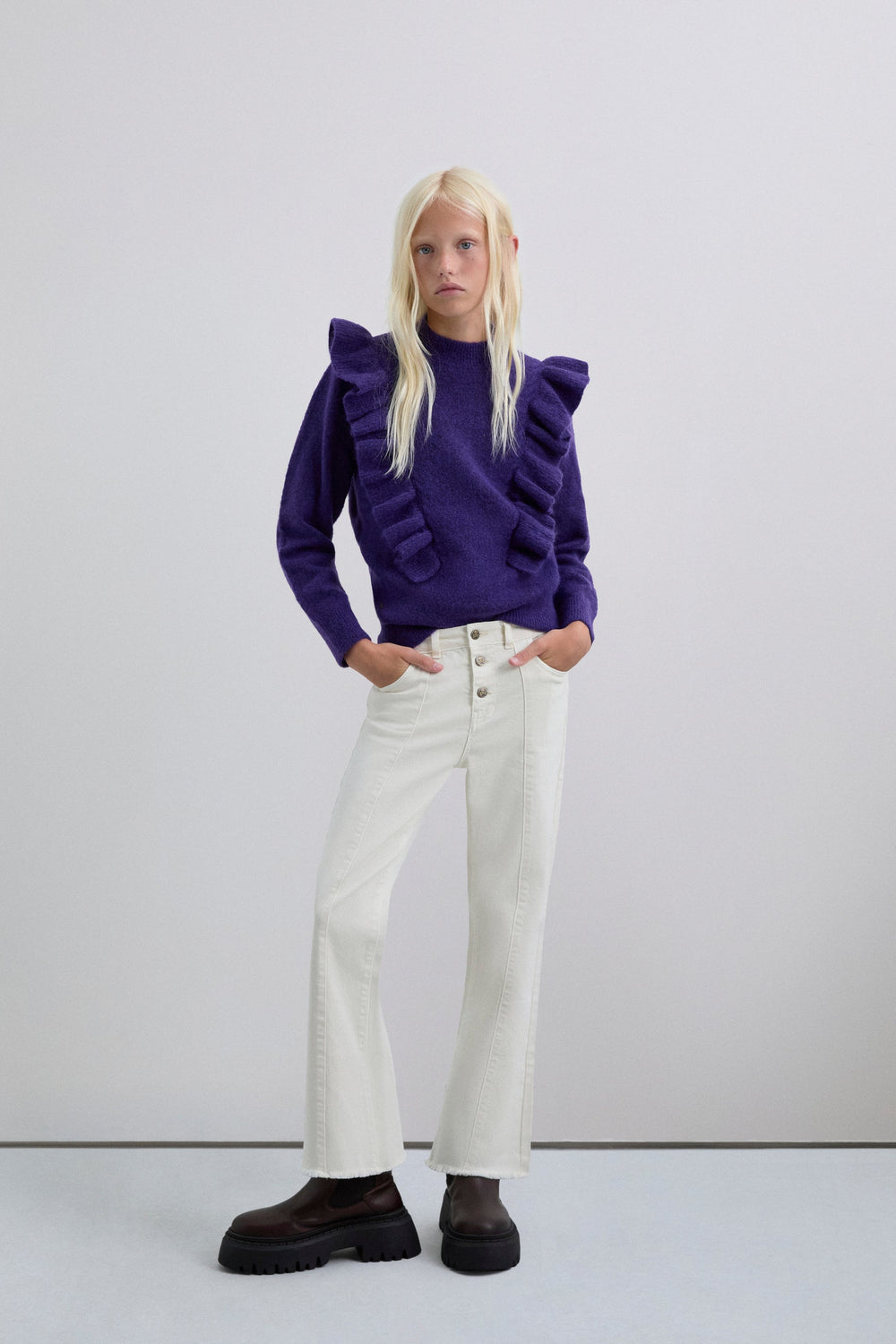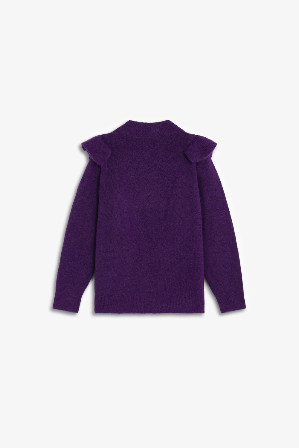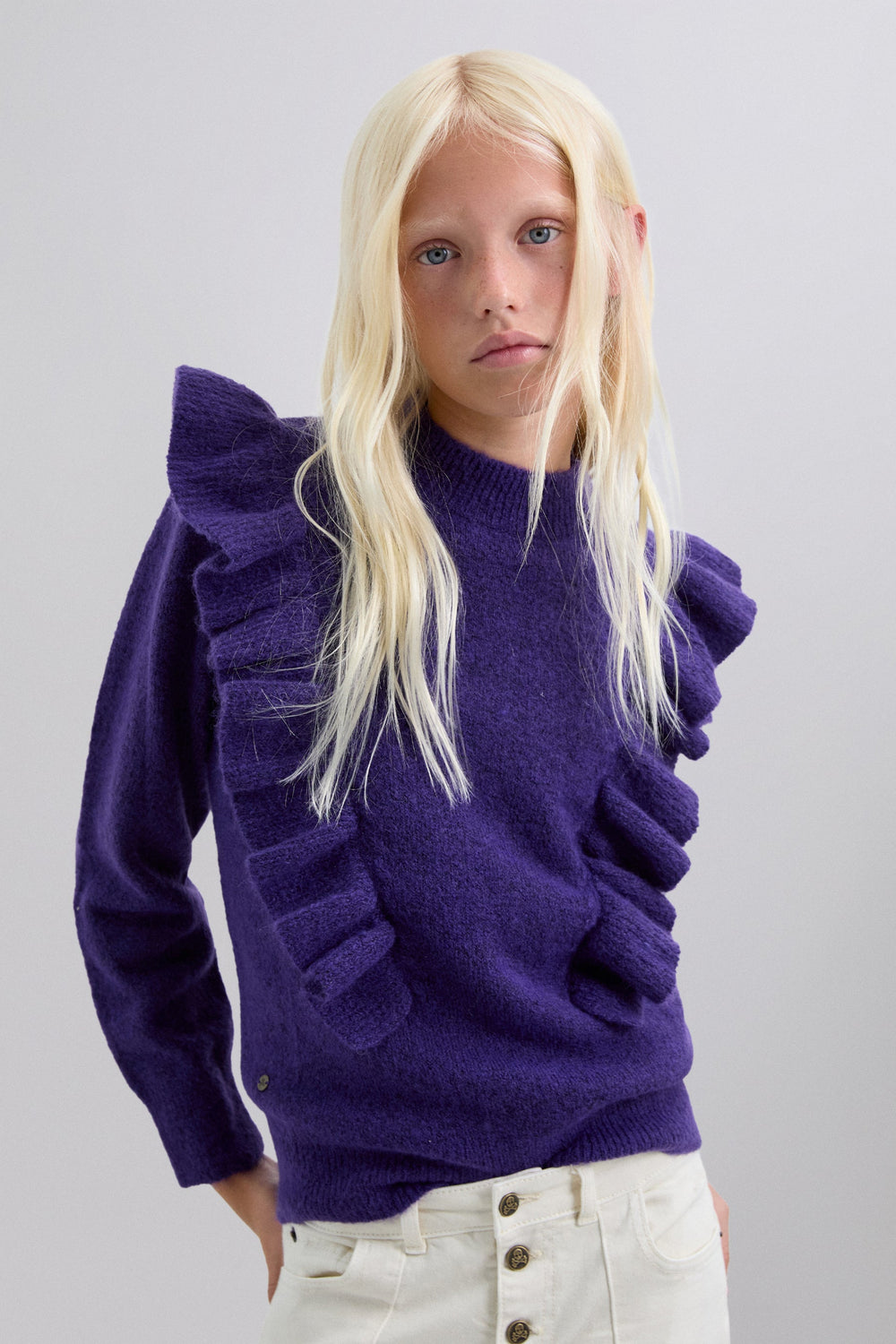 Pull confectionné dans un mélange synthétique. Manches longues. Coupe droite. Col légèrement montant et manches à finitions en bord-côte. Volants sur le devant.