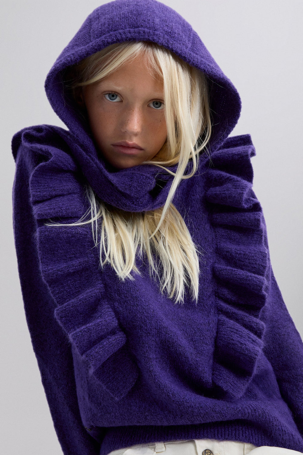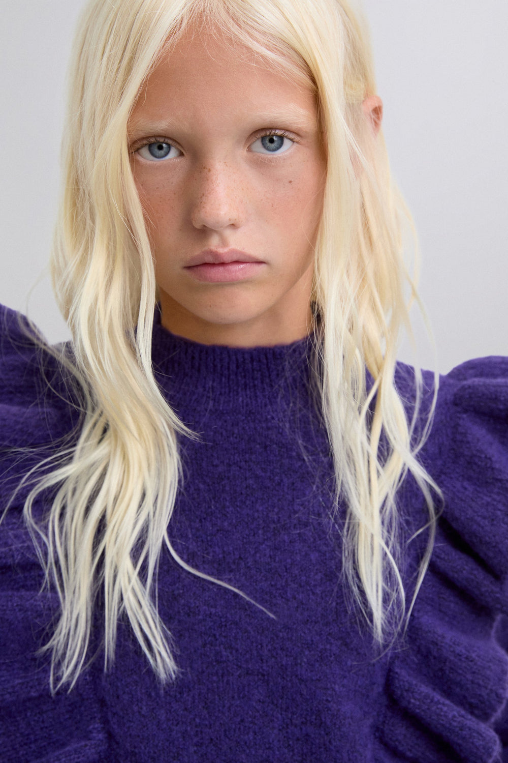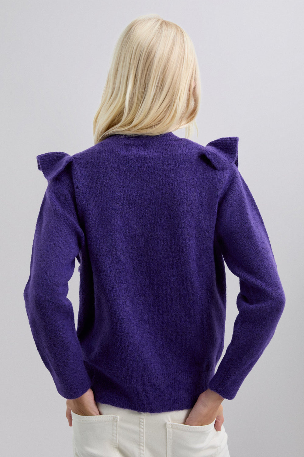 Pull confectionné dans un mélange synthétique. Manches longues. Coupe droite. Col légèrement montant et manches à finitions en bord-côte. Volants sur le devant.