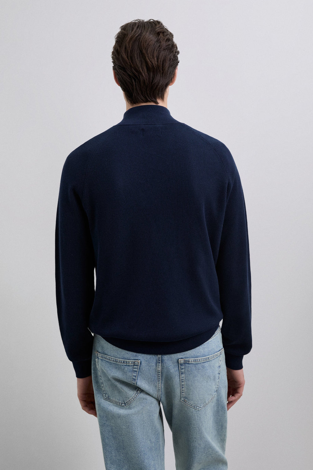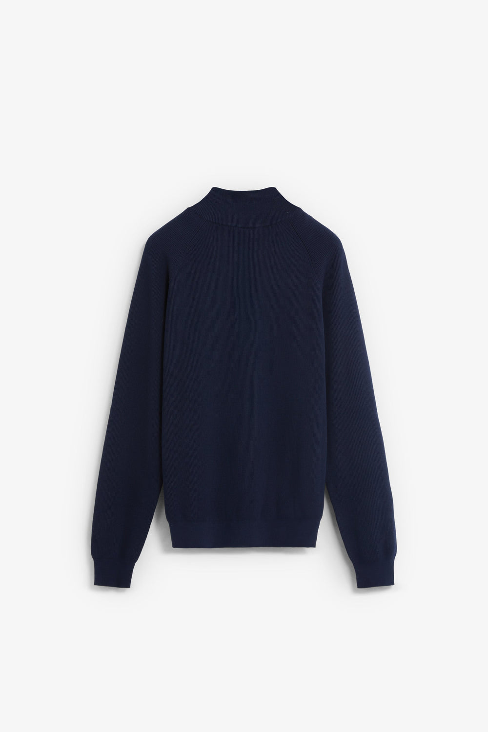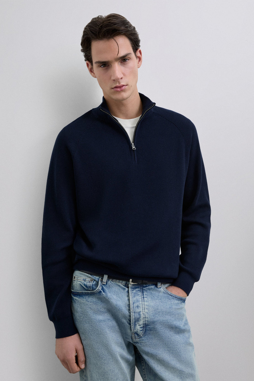 Pull 100 % coton BCI. Manches longues. Col mock à fermeture éclair.