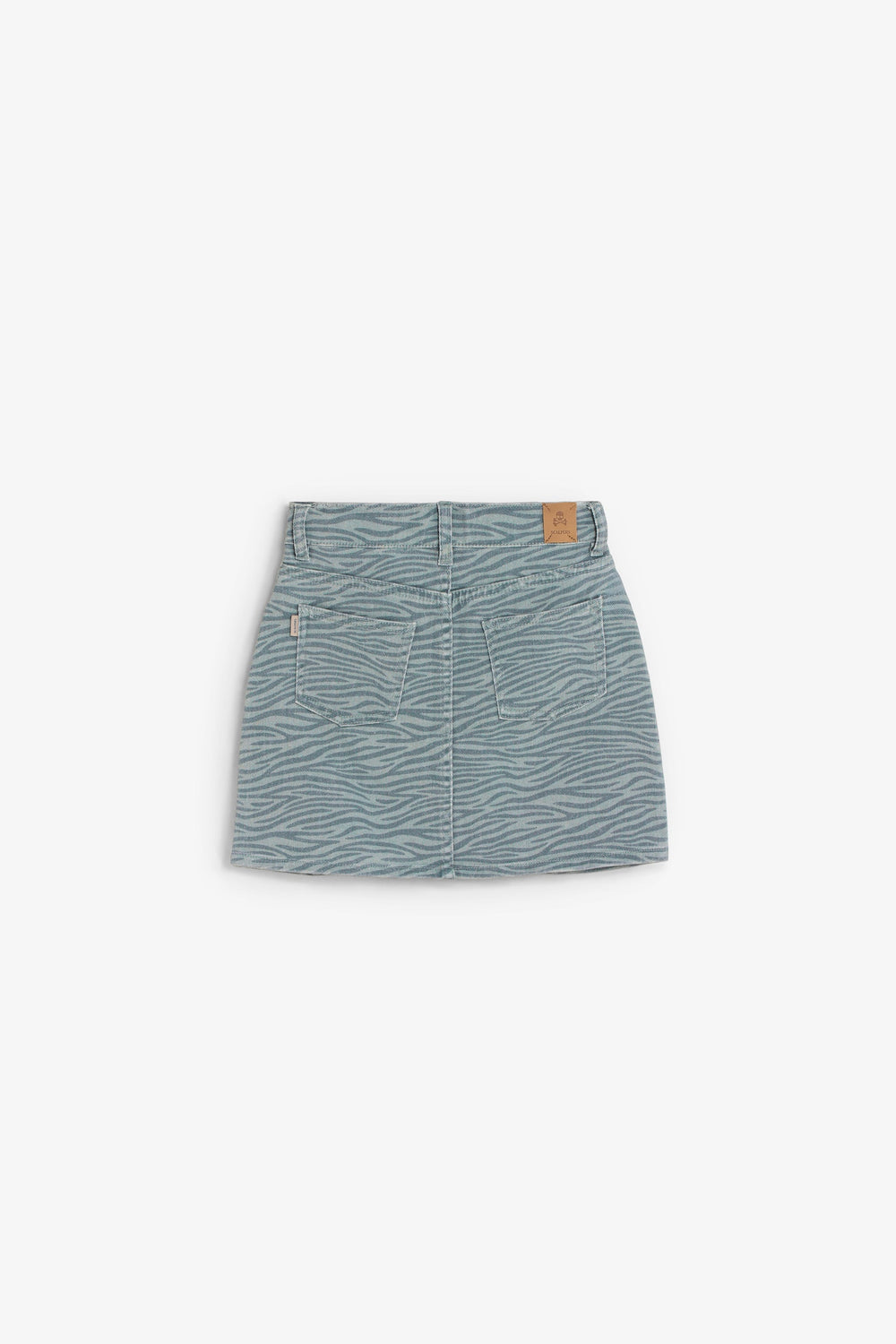 Mini-jupe composée à 98 % de coton biologique BCI. Bouton et fermeture Éclair sur le devant. Poches à l’avant et à l’arrière. Imprimé zèbre. Étiquette à l’arrière.
