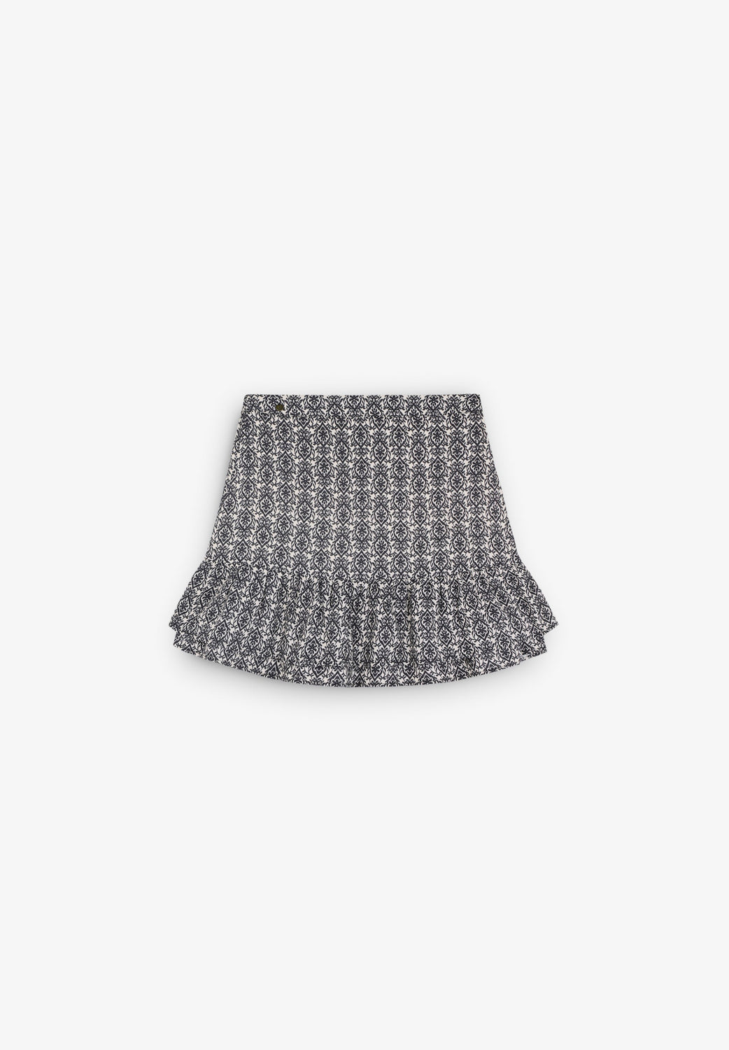 Mini-jupe imprimée 100 % viscose. Fermeture sur le côté et volants dans le bas.