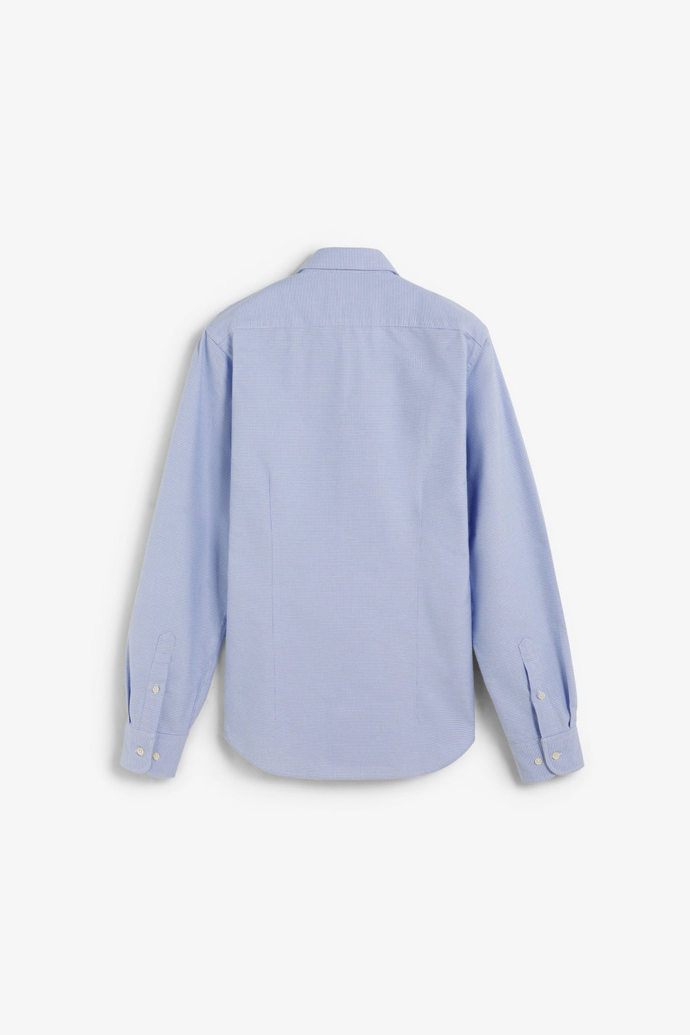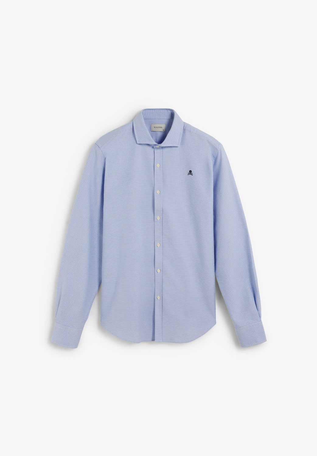 Chemise à rayures 100 % coton BCI. Col italien, boutons, coupe droite, skull contrastant sur la poitrine. Poignets boutonnés.