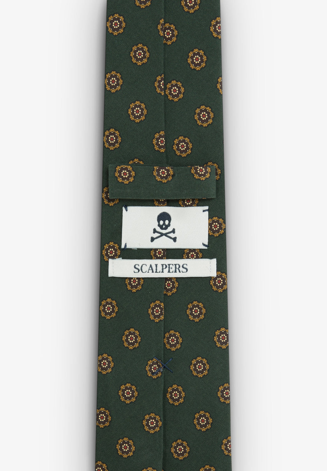 Cravate 100 % soie à imprimé floral et doublée, largeur 7,5 cm.
