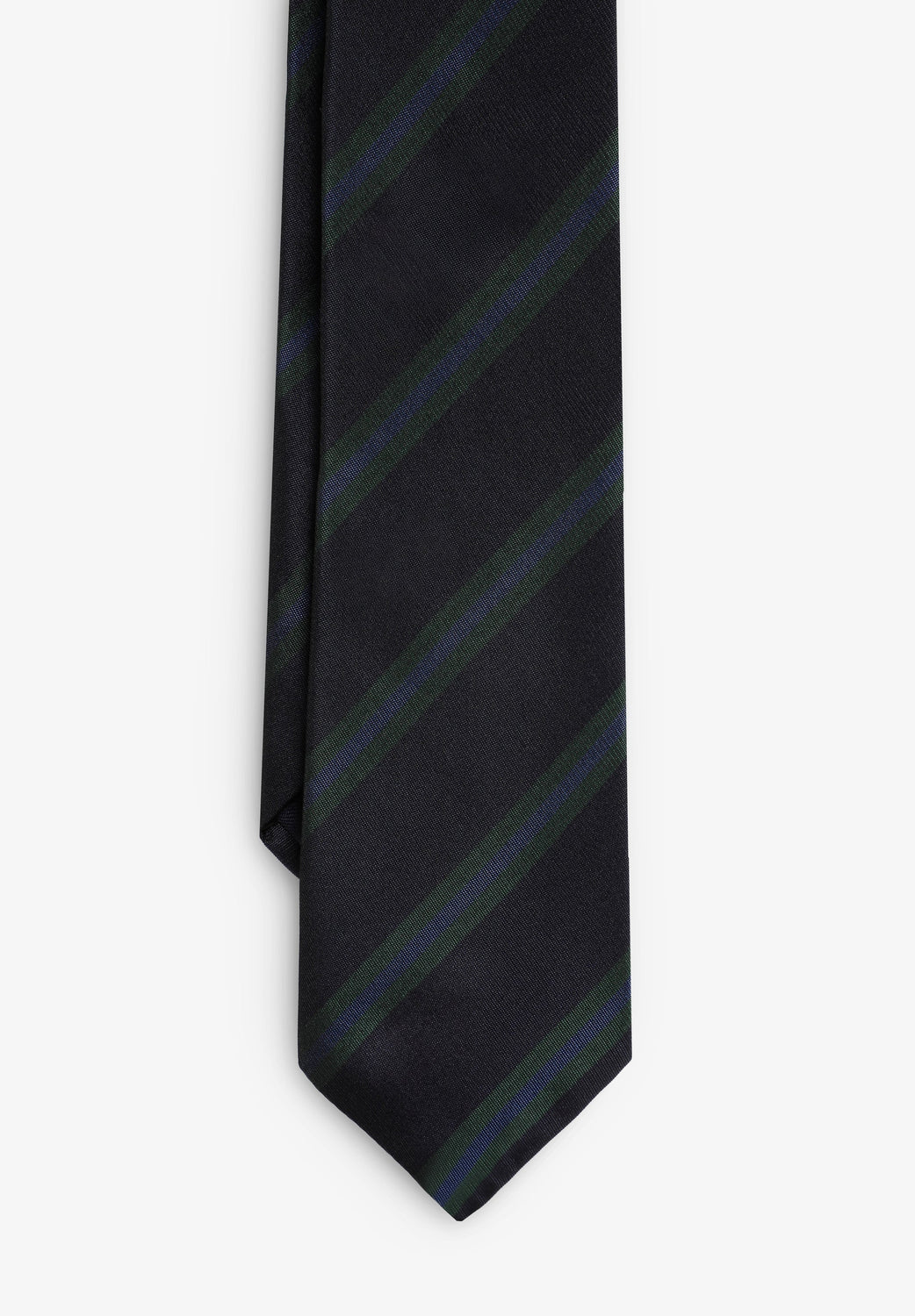 Cravate 100 % soie à rayures. Largeur 7,5 cm.